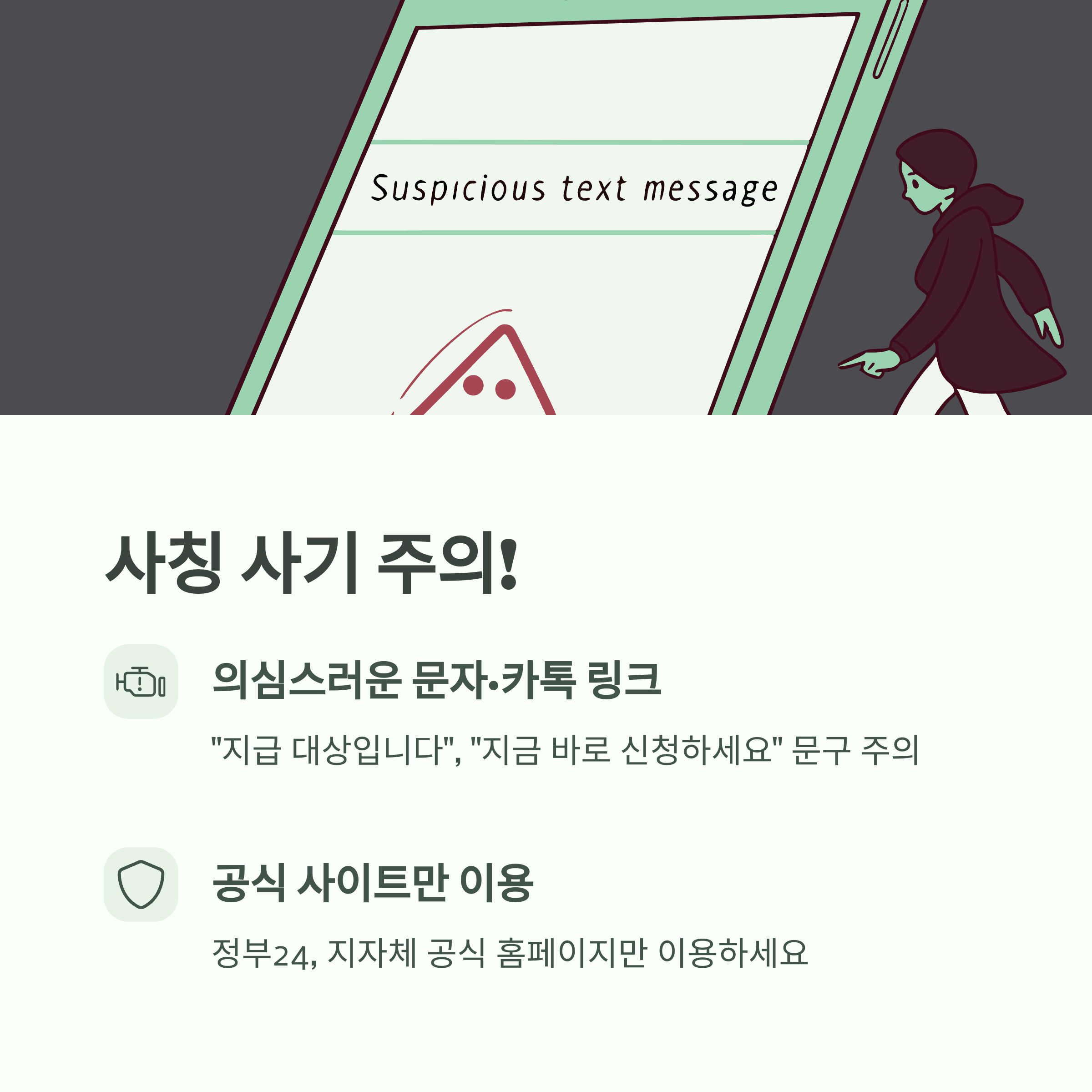 긴급 생활지원금 사칭 사기에 주의하세요