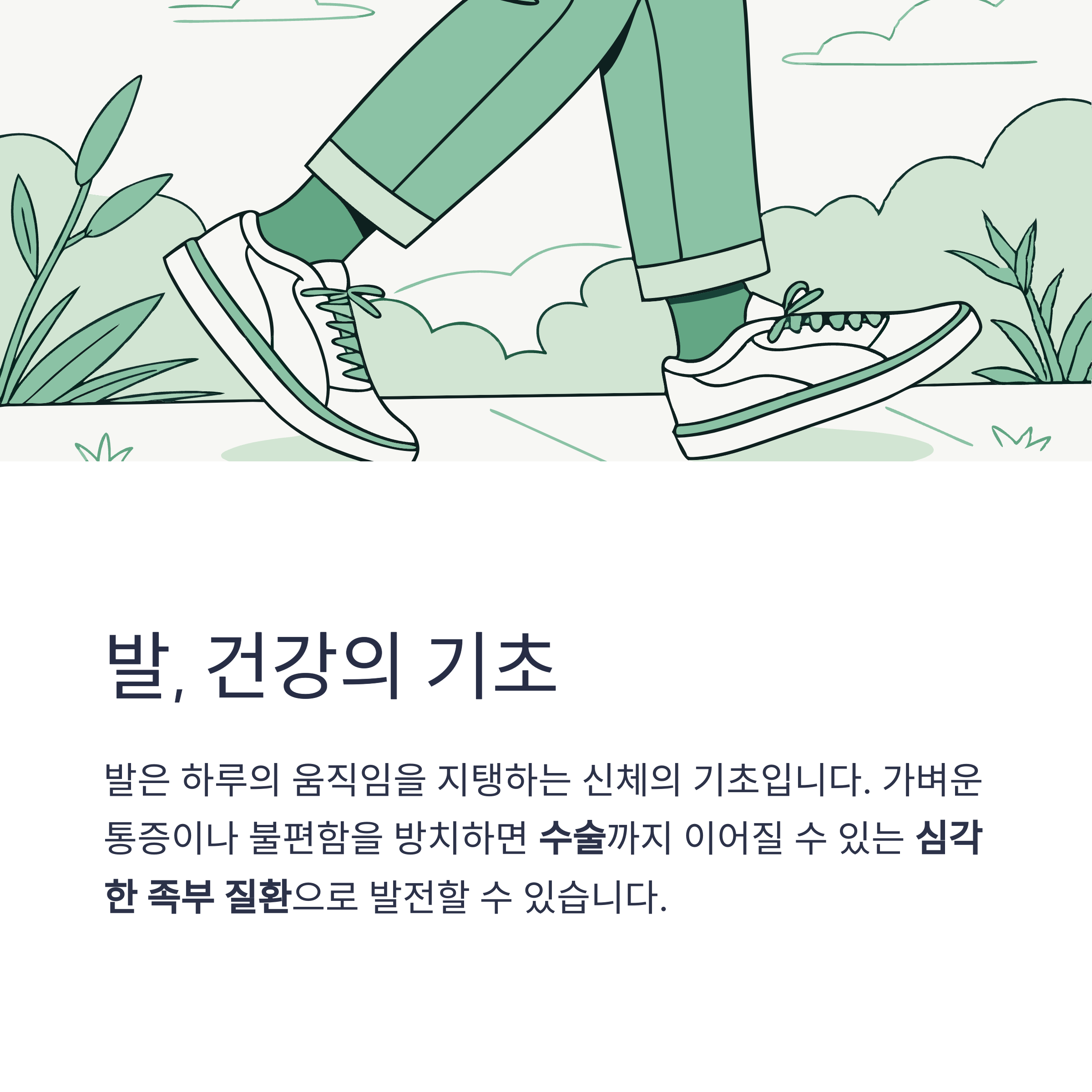 발 건강을 무시하면 일상 생활 불편, 만성 통증, 수술이라는