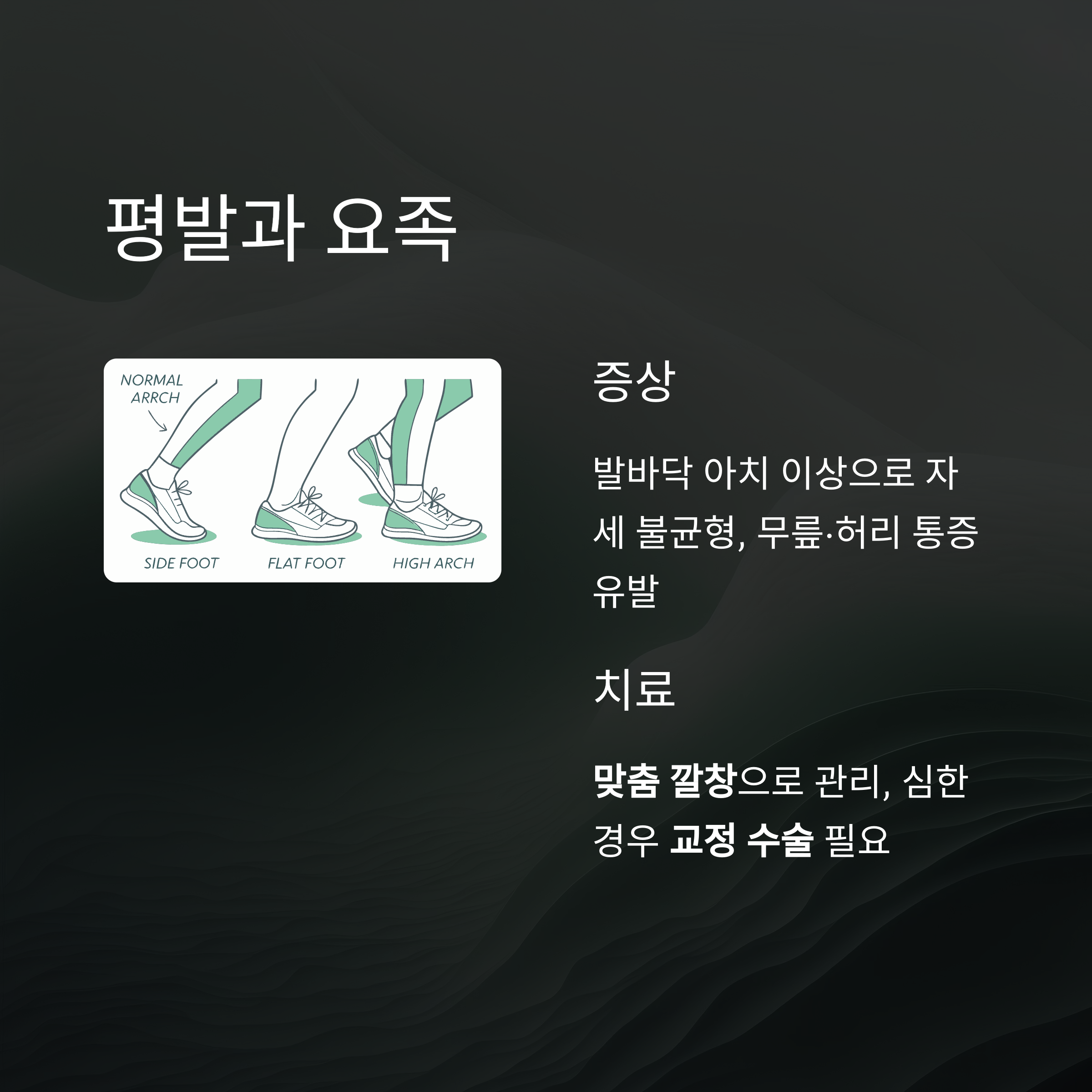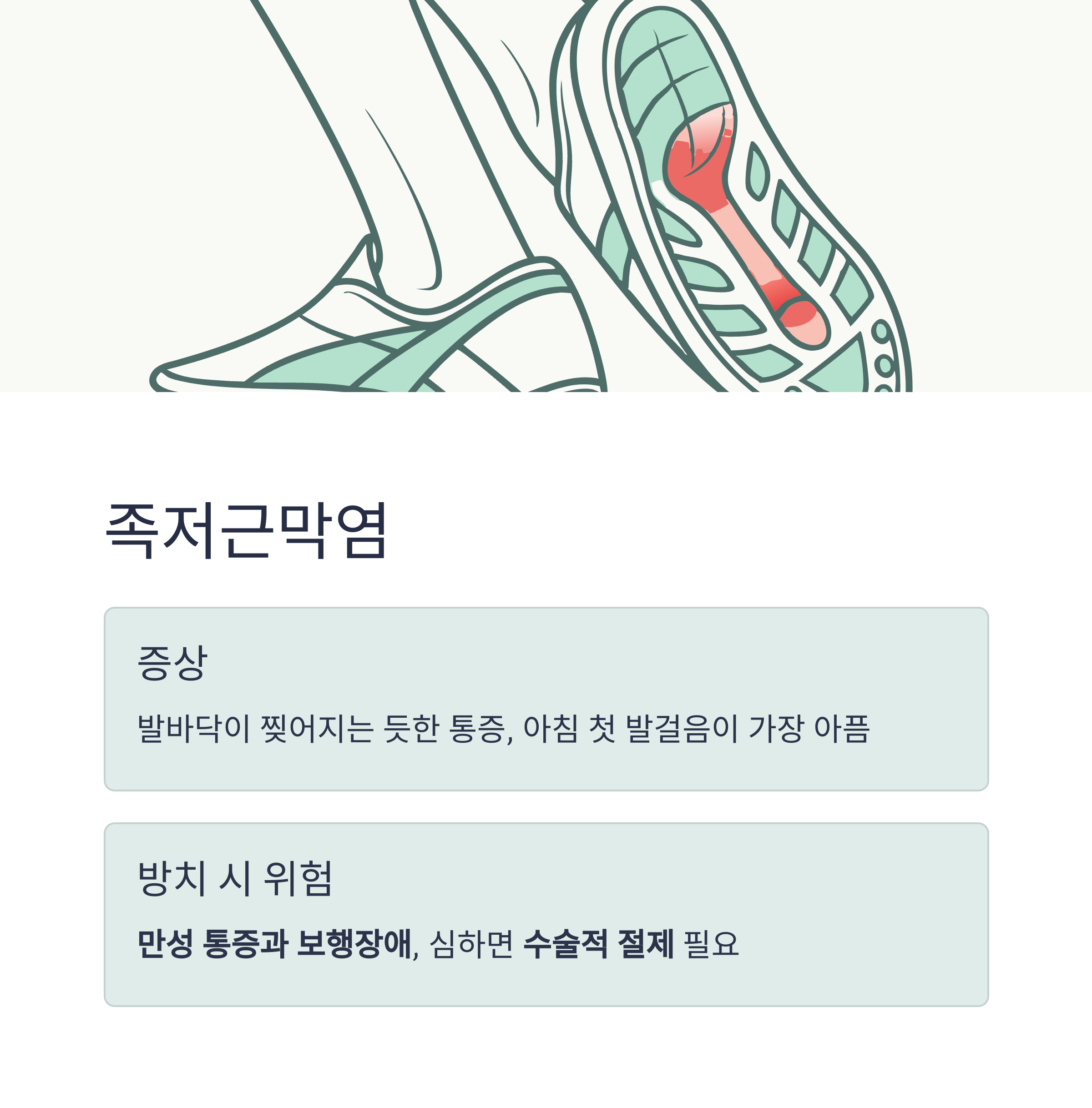 방치 시 만성 통증과 보행장애를 유발할 수 있습니다.