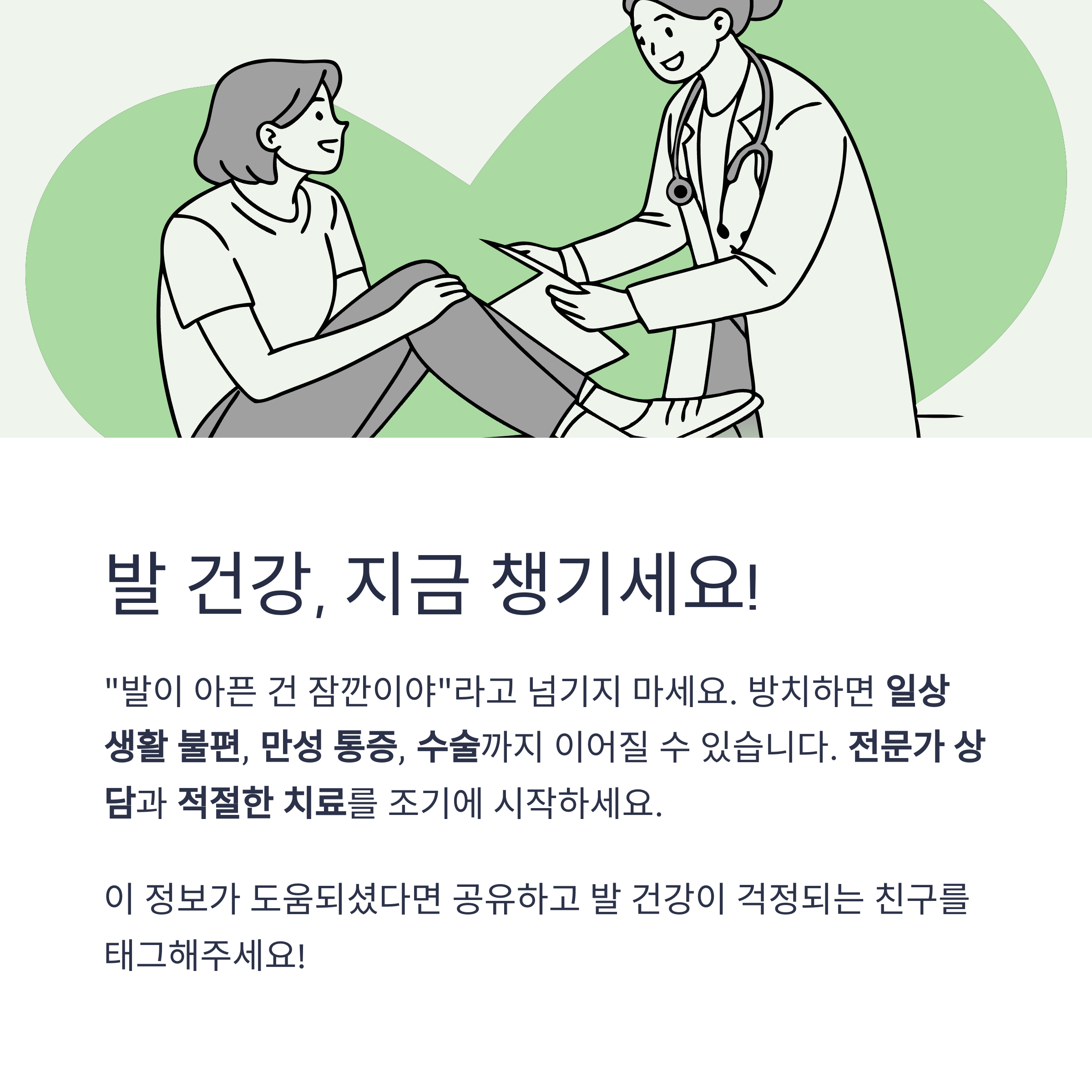 이러한 방치는 결국 수술까지 이어질 수 있는 심각한 족부 질환으로 발전할 수 있습니다.