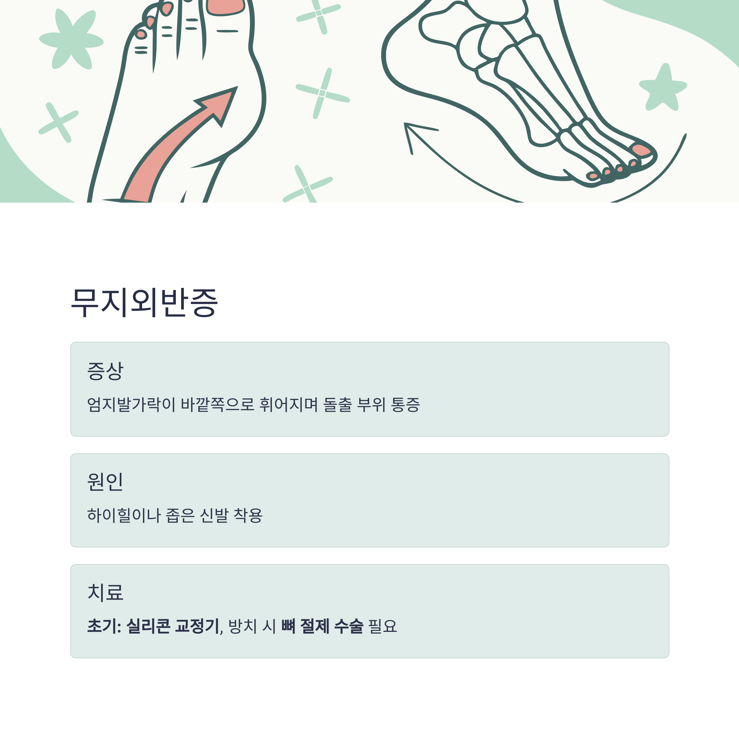 심한 변형이나 통증은 교정 수술이 필요할 수 있습니다.
