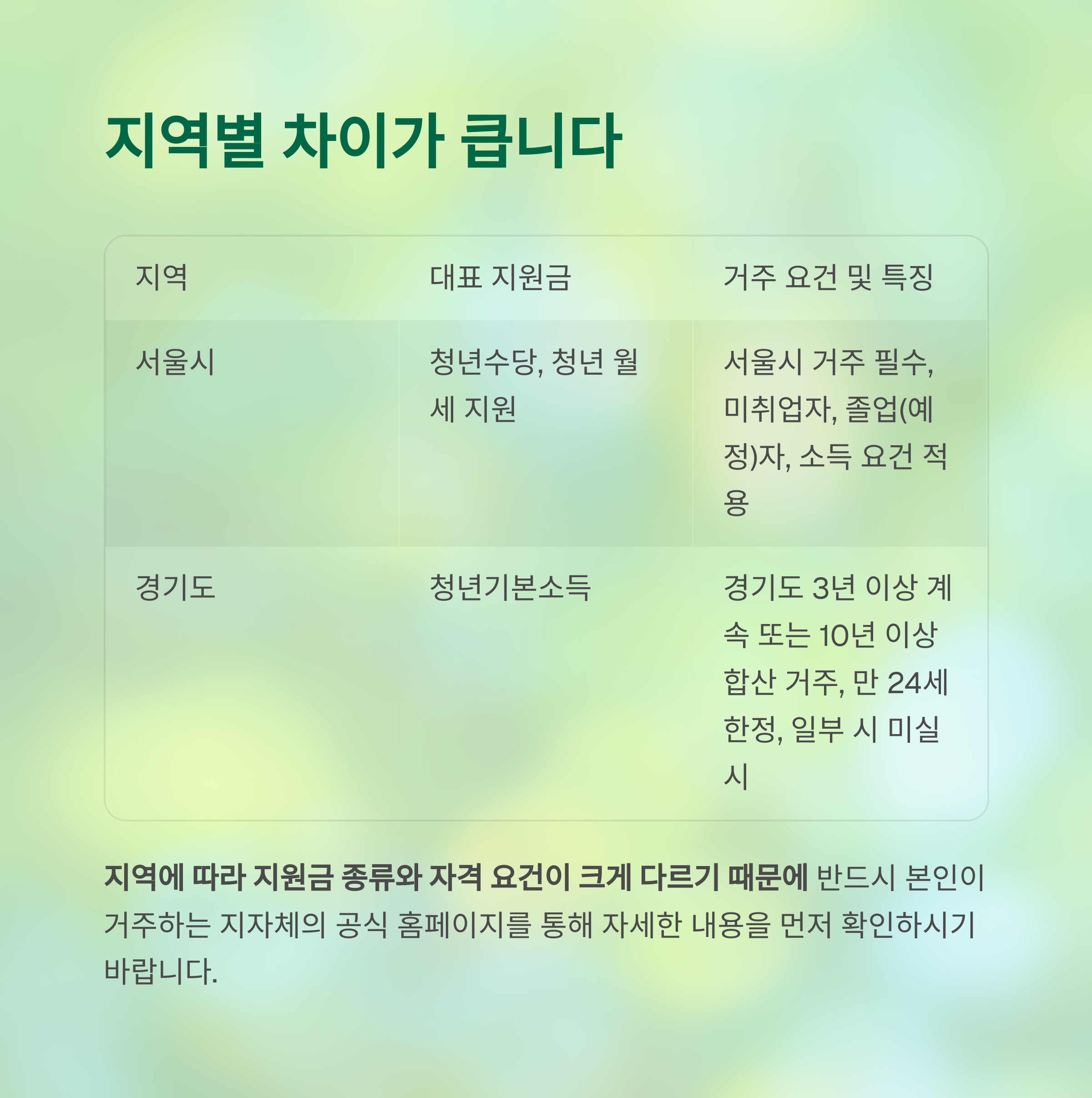 지역별 요건 차이 | 지자체별 지원금 종류 및 자격 요건 차이 확인 |