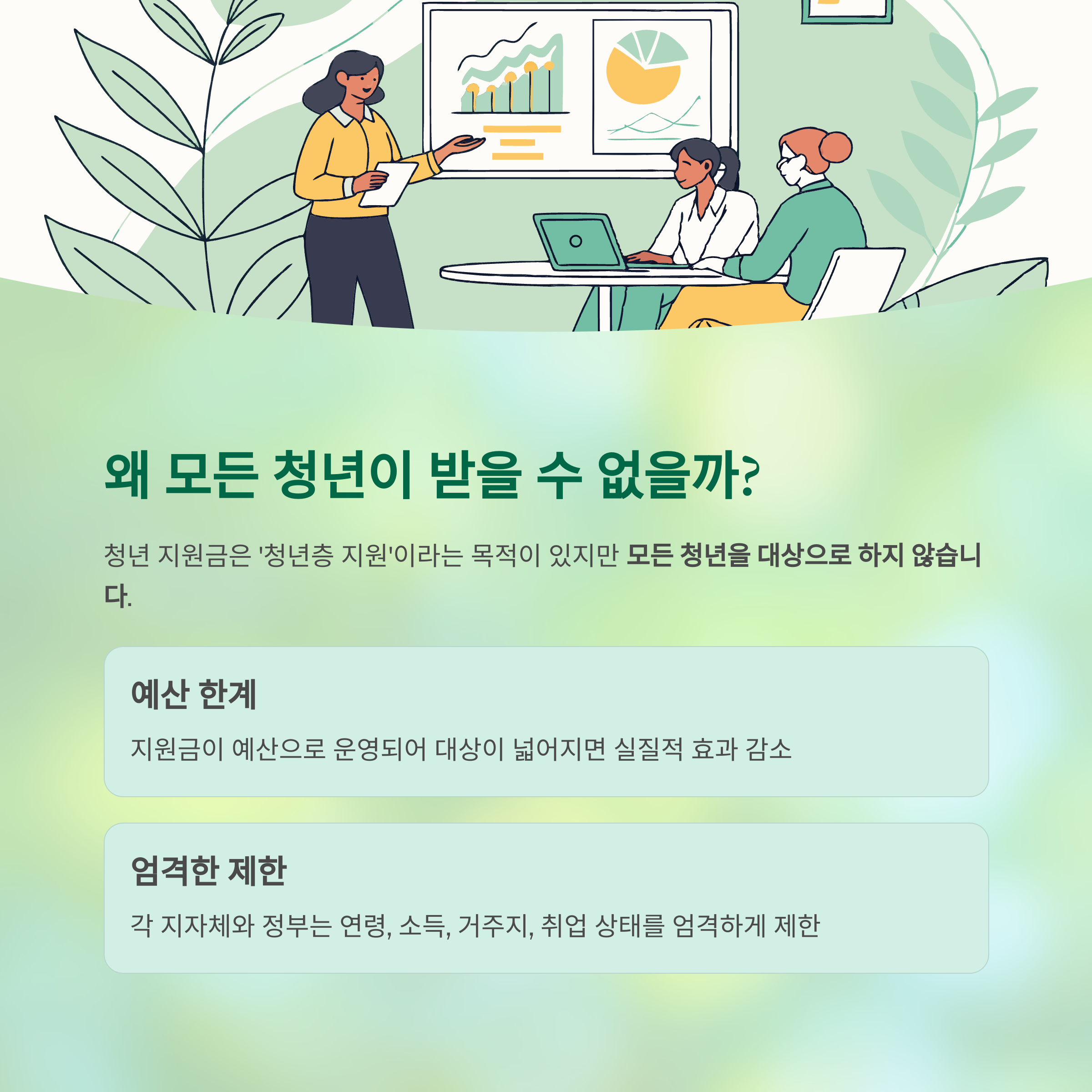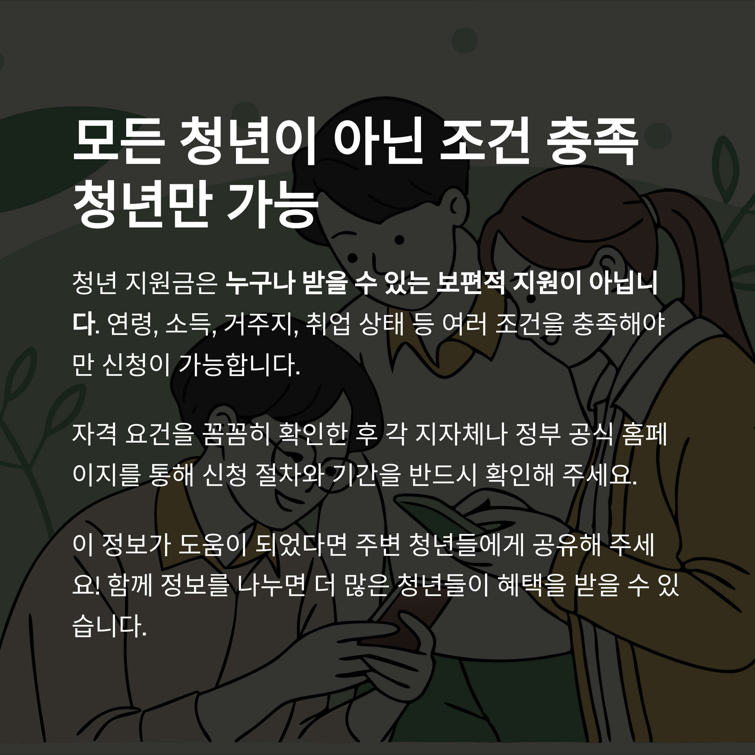 청년 지원금은 누구나 받을 수 있는 보편적 지원이 아닙니다.