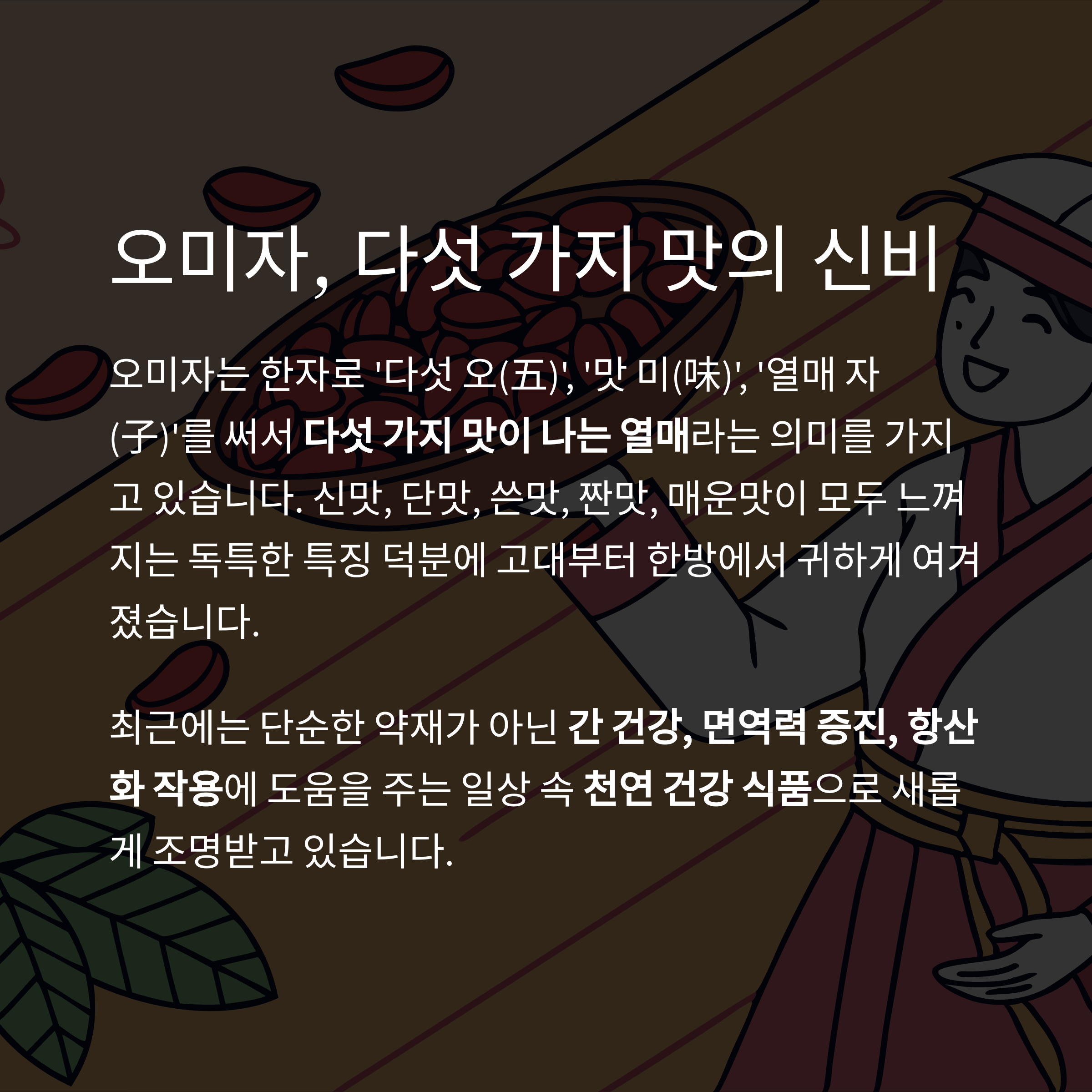 오미자는 단순히 다섯 가지 맛이 나는 열매가 아닙니다.