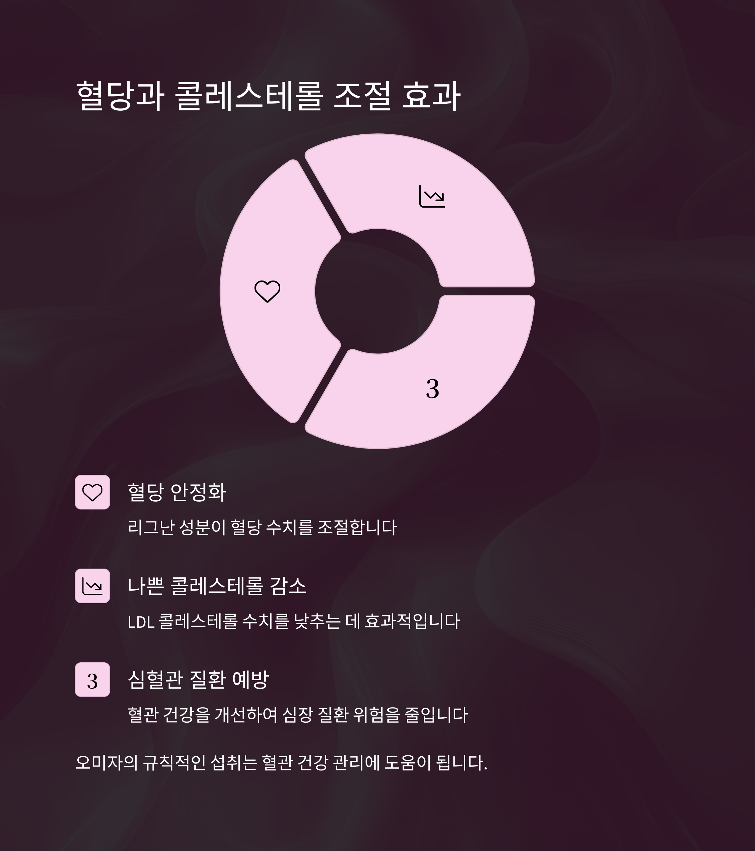 혈당을 안정시키고 나쁜 콜레스테롤(LDL) 수치를 낮추는 데 효과적입니다.