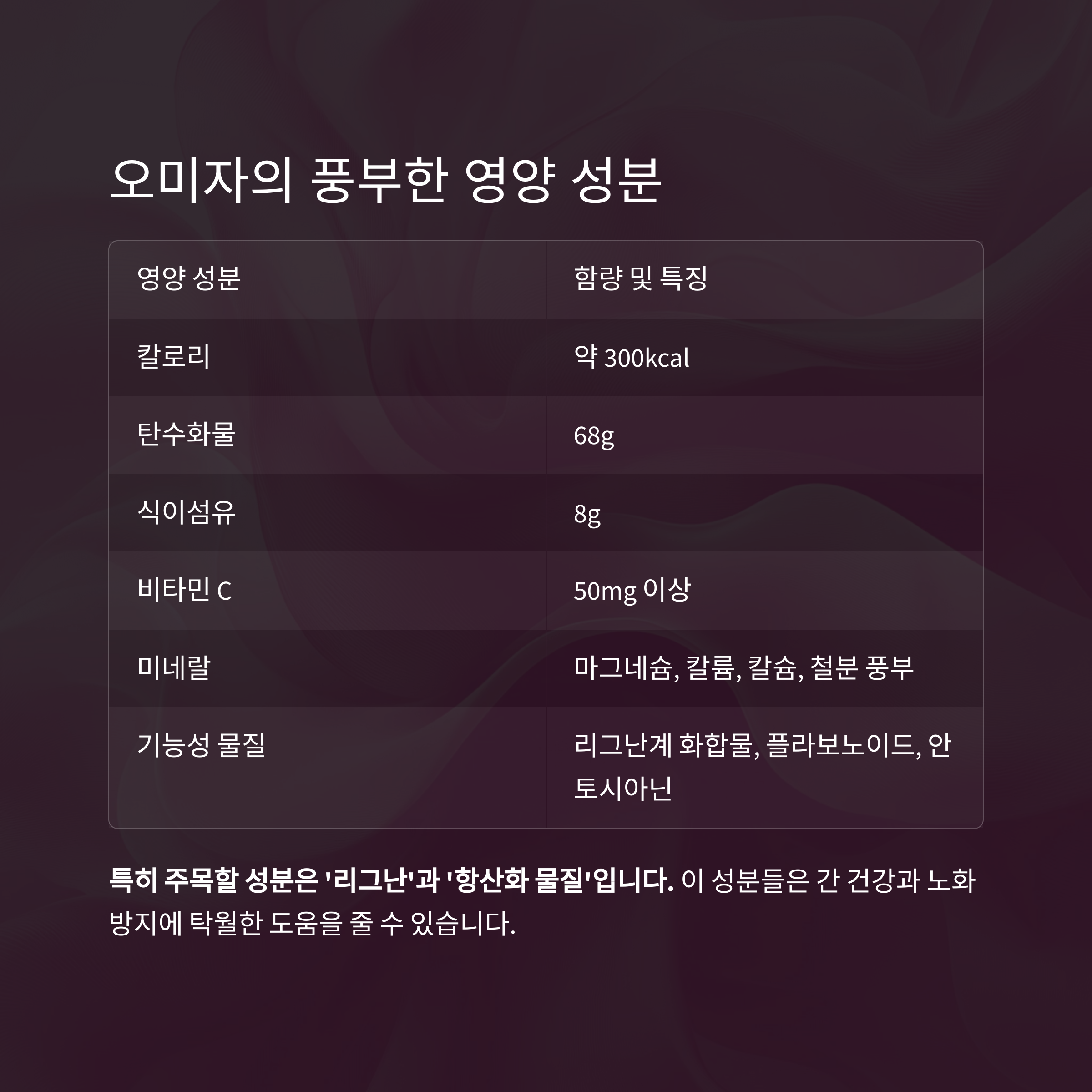 오미자주 | 전통주로 섭취 시 간 기능 개선 기대 |