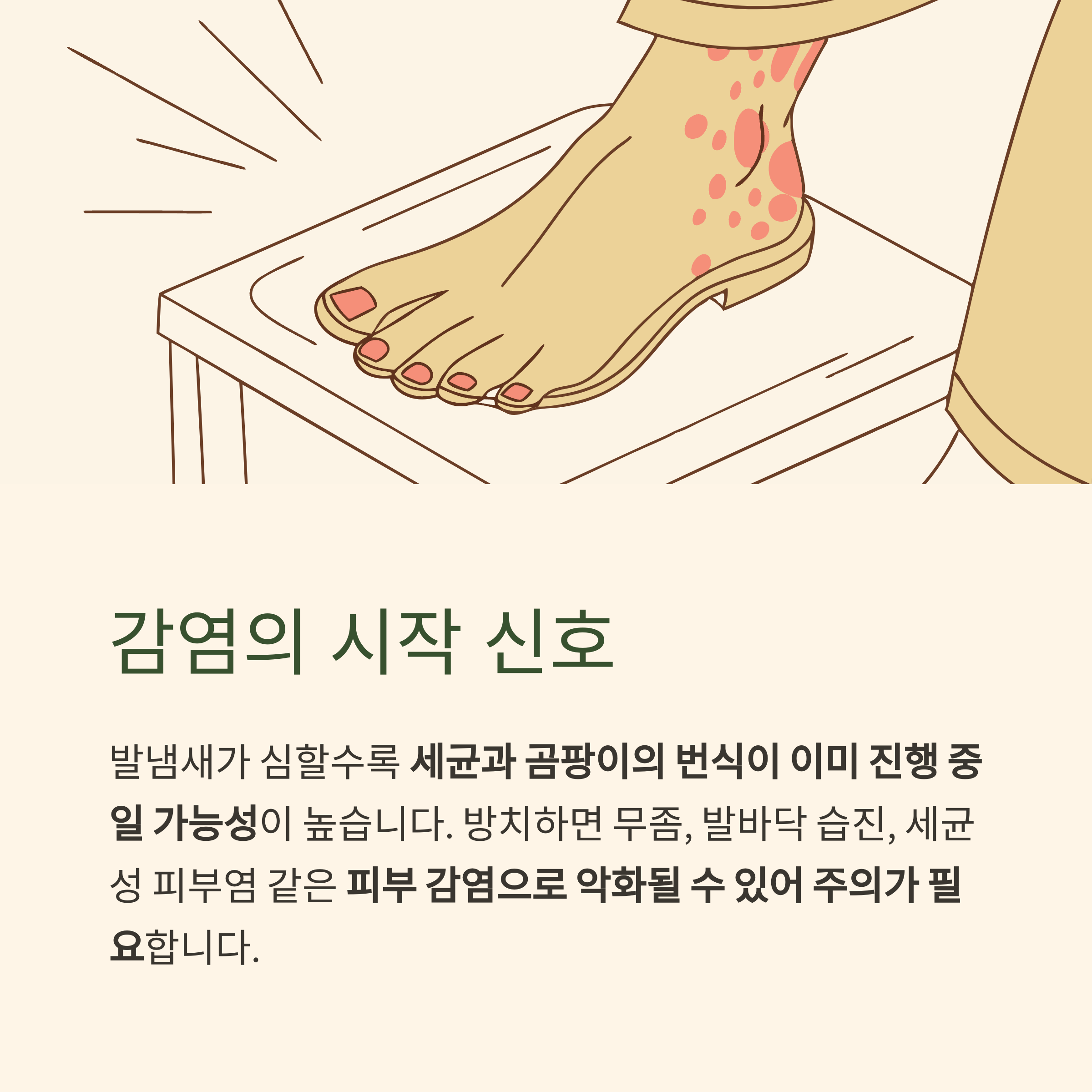 심할 경우 피부 감염이나 발 건강에 위협이 될 수 있다는 사실을