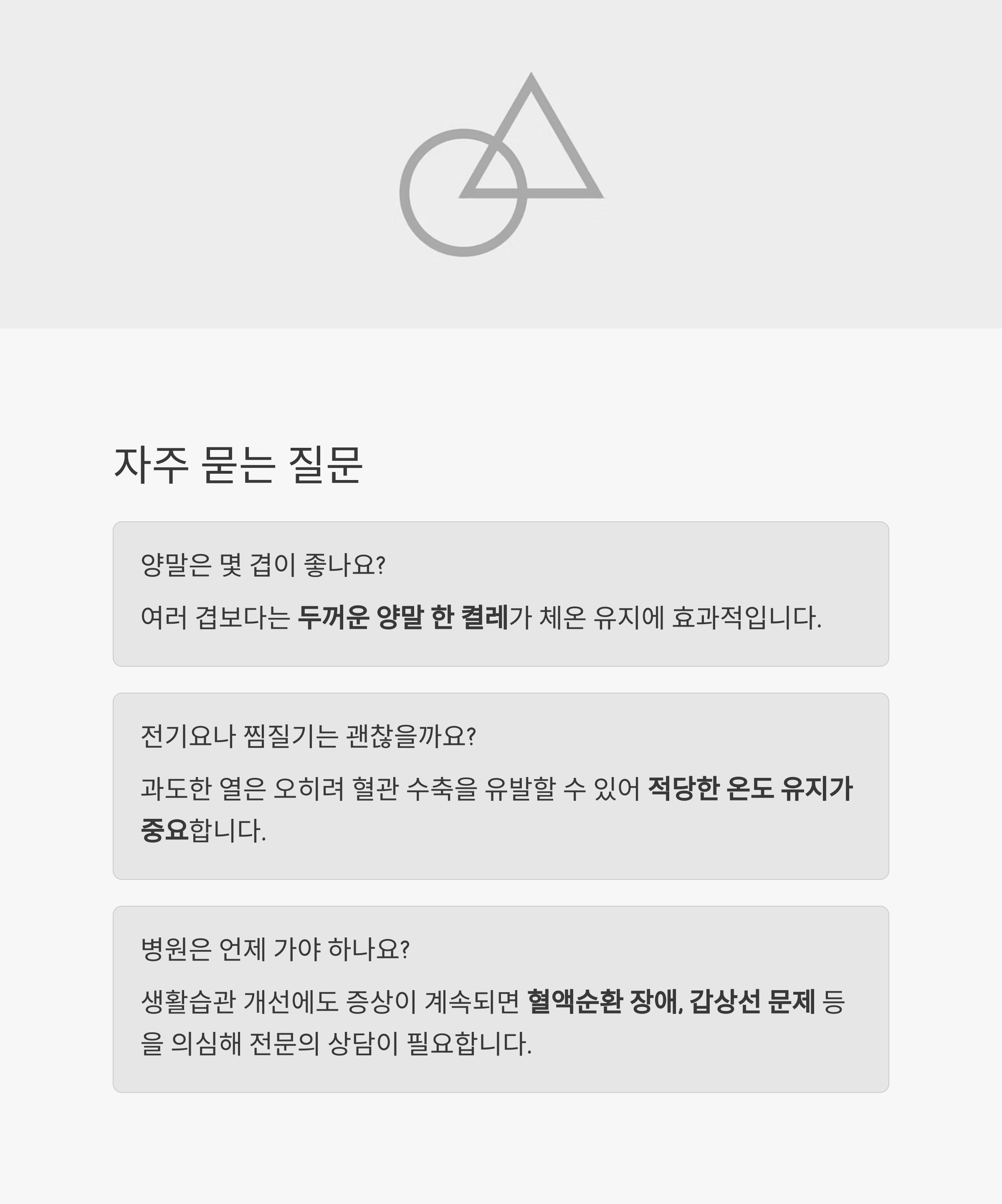 | 두꺼운 양말 착용 | 체온 유지에 도움 |