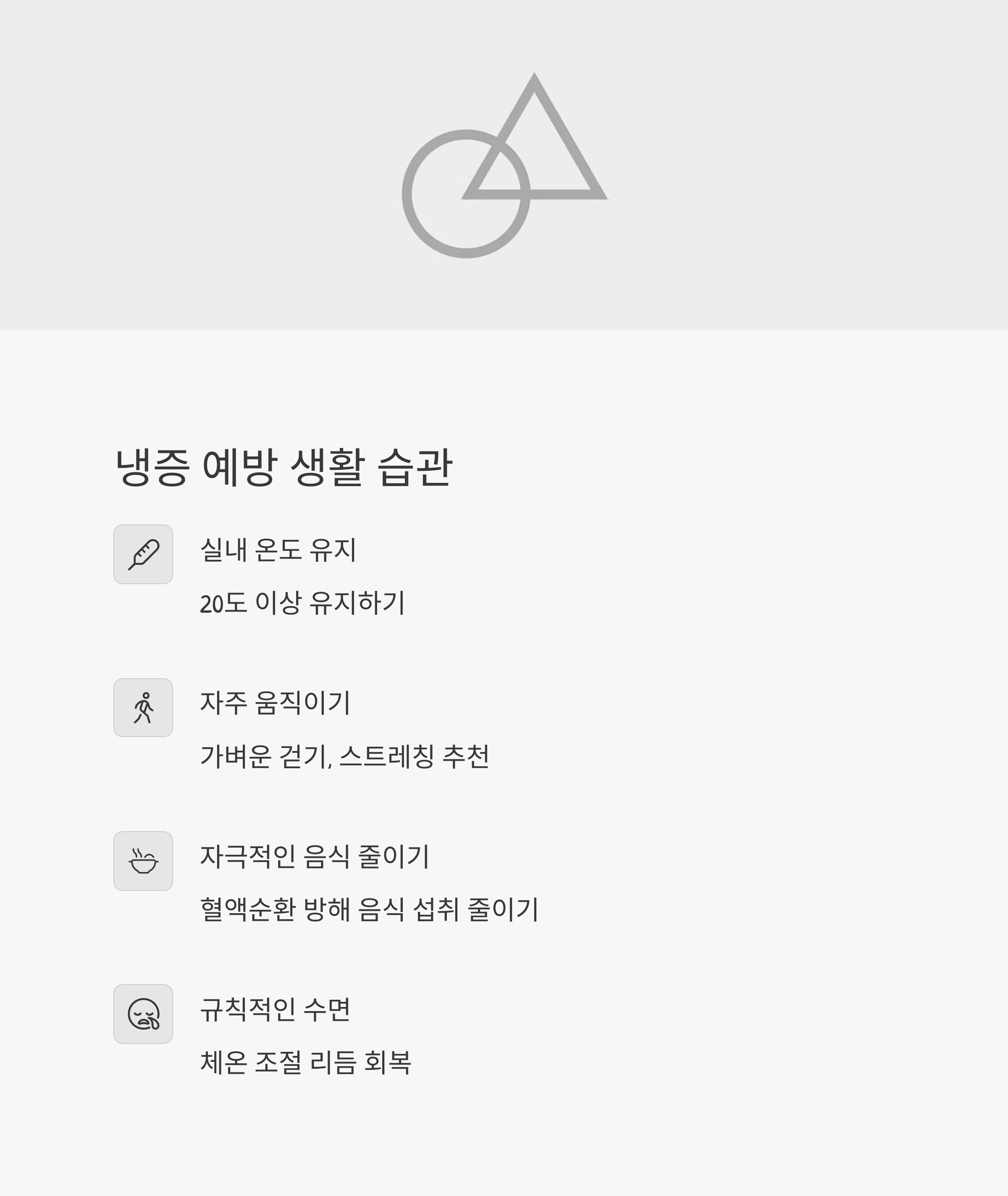 | 바닥이 차가운 곳 피하기 | 냉기 차단 |