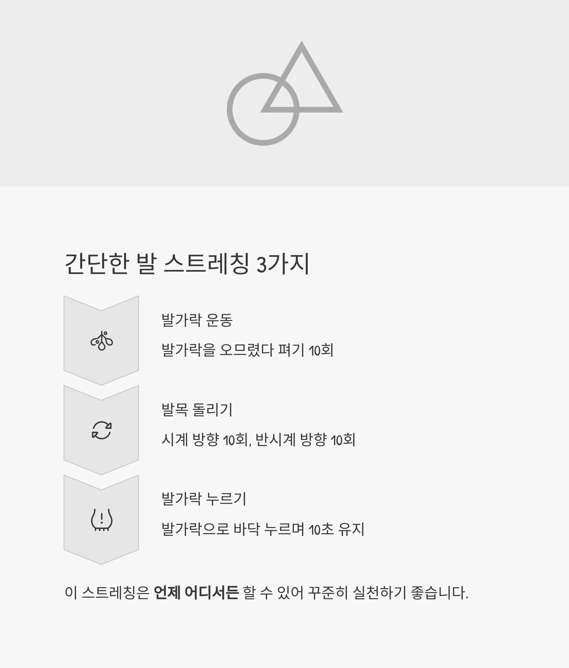 | 수시로 발 스트레칭 | 혈액순환 개선 |