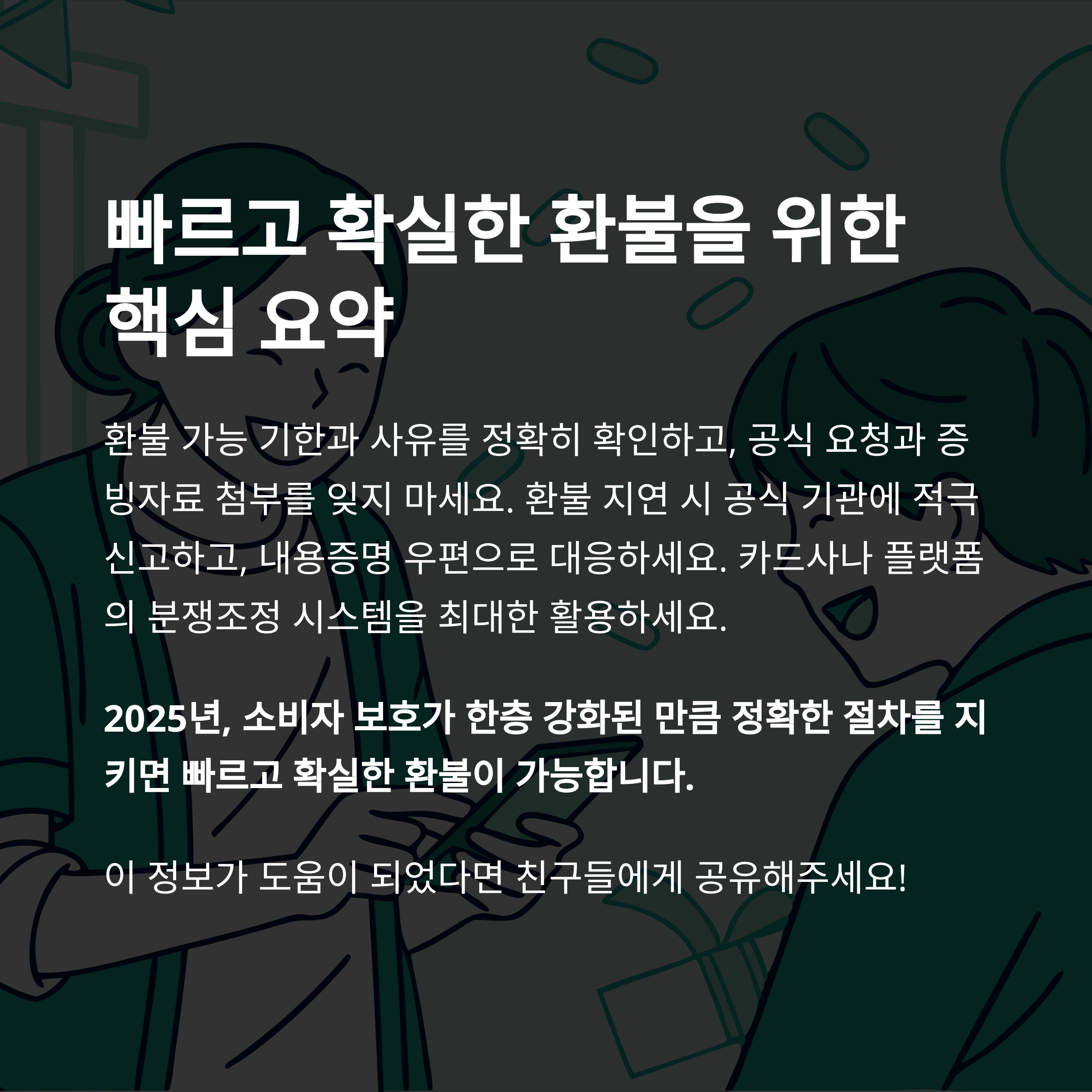 "2025년, 소비자 보호가 한층 강화된 만큼 정확한 절차를 지키면 빠르고 확실한 환불이 가능합니다."