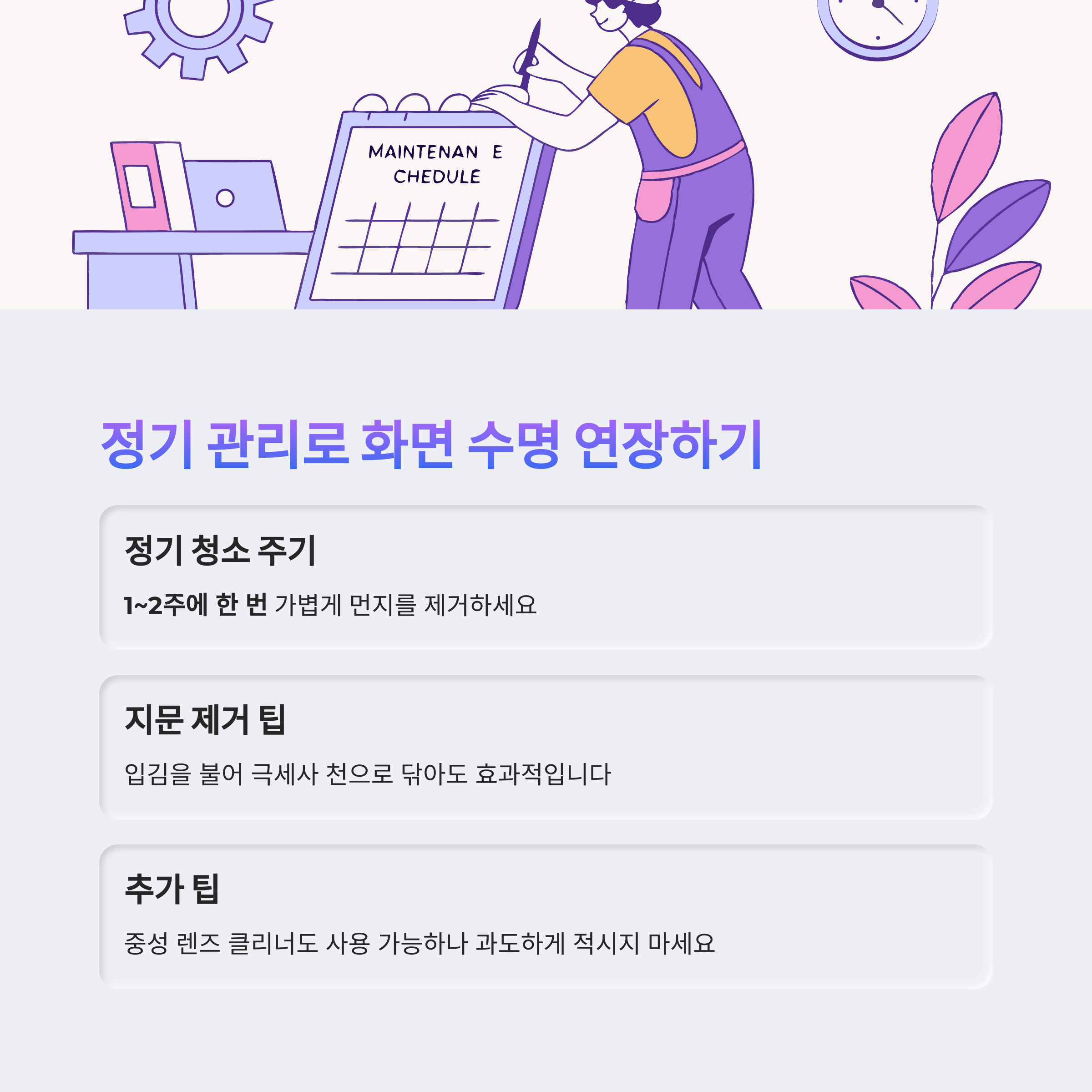 정전기, 먼지, 지문이 쌓여도 무심코 방치하는 경우가 많습니다.