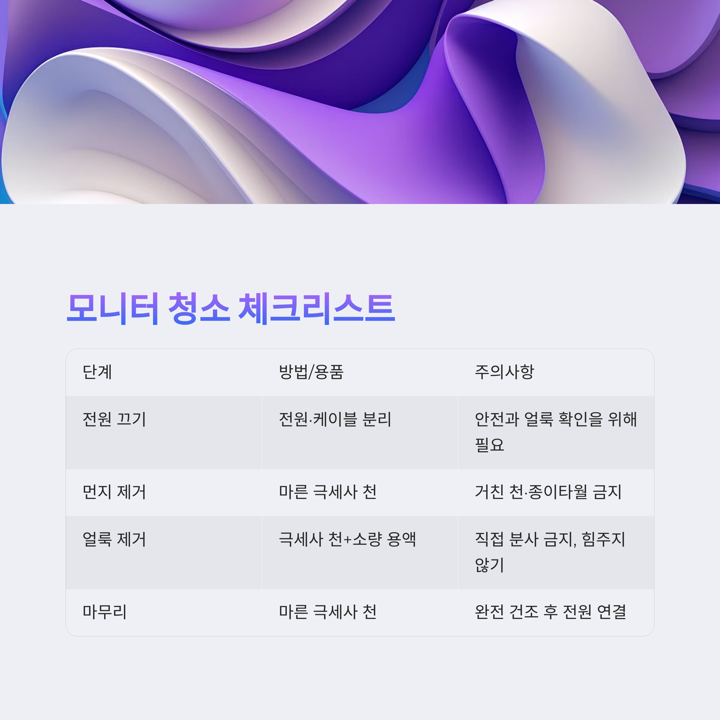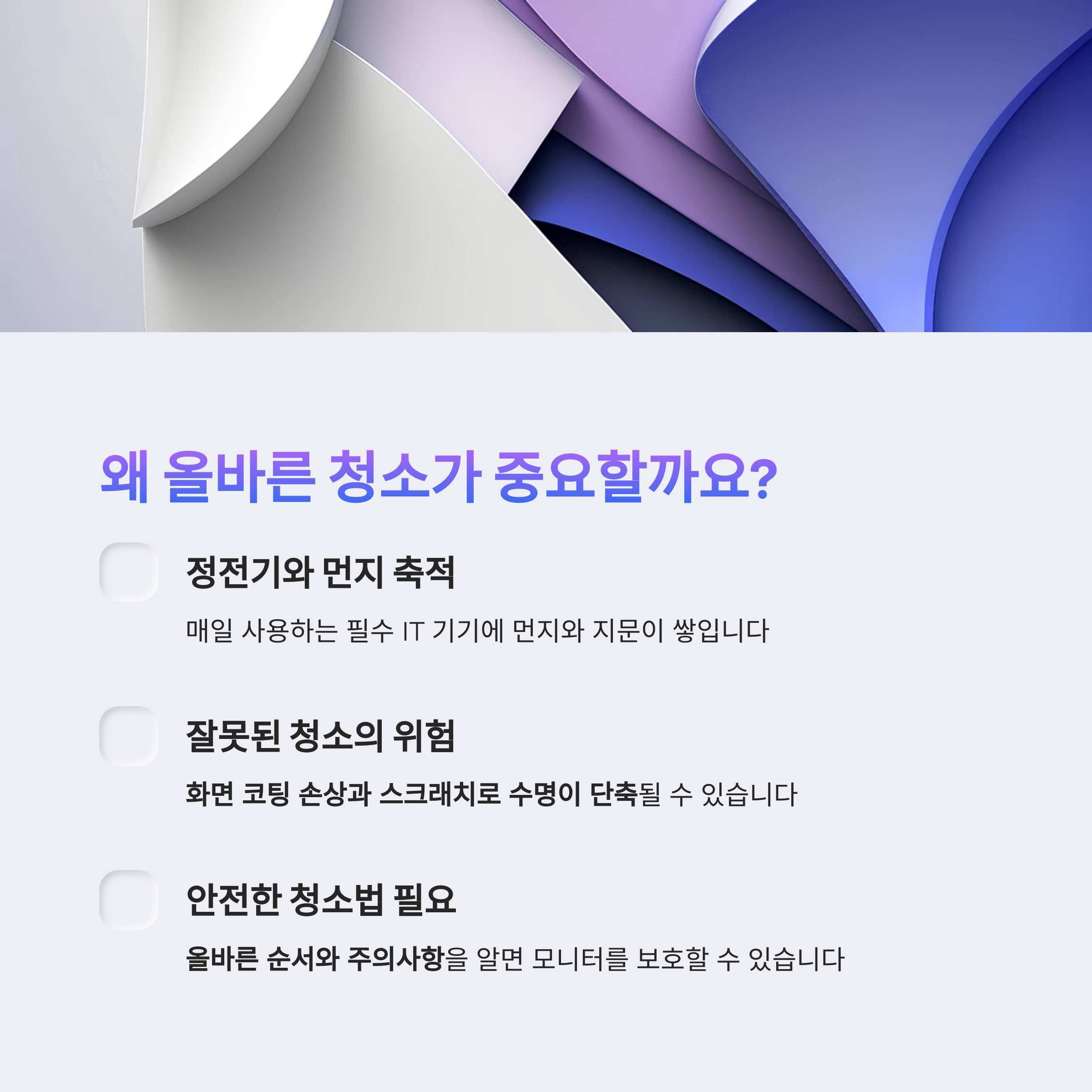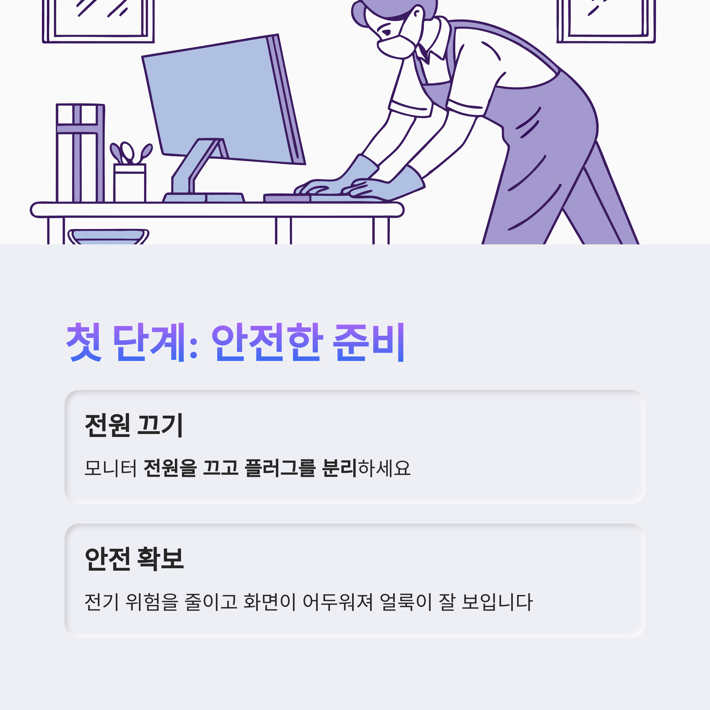 오늘은 모니터를 안전하게 닦는 올바른 순서와 주의사항을