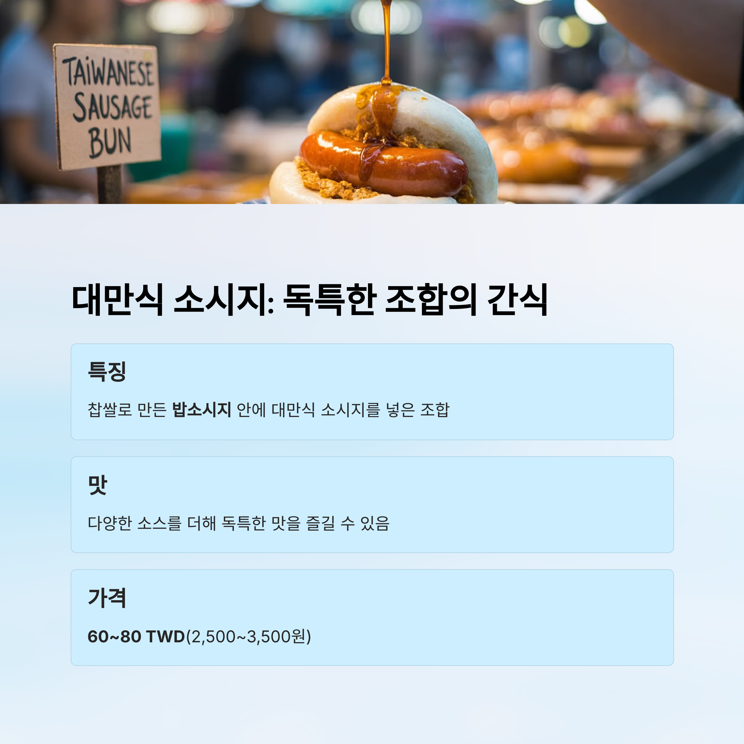 대만식 소시지 | 스린, 닝샤 | 60~80 | 밥소시지와 소시지의 조합 |
