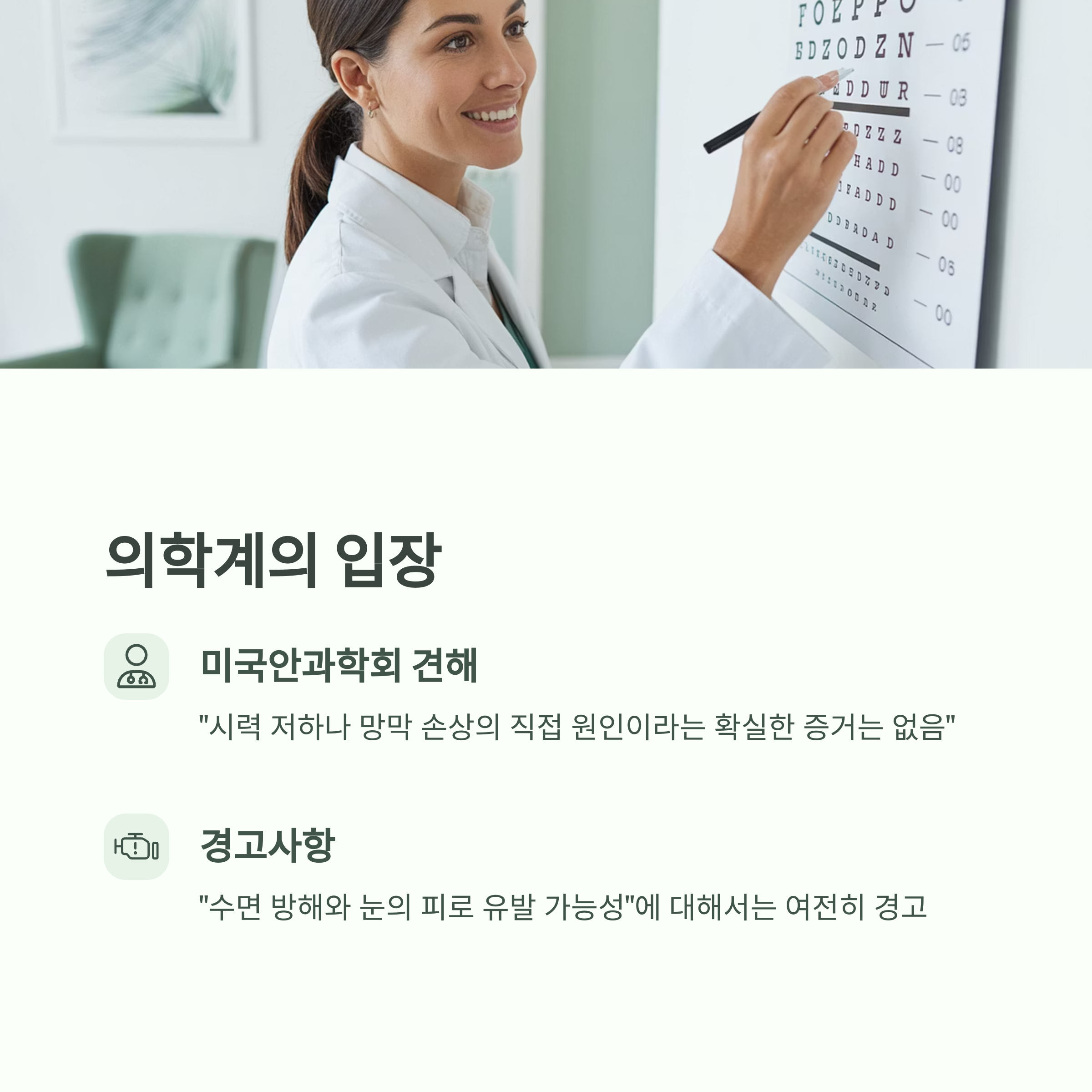 "수면 방해와 눈의 피로 유발 가능성"에 대해서는