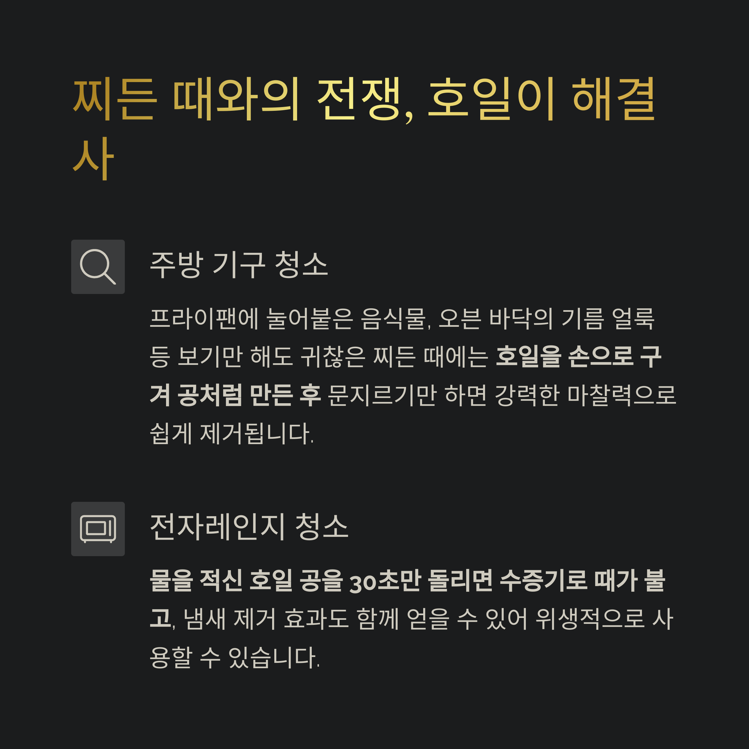 물을 적신 호일 공을 30초만 돌리면 수증기로 때가 불고,