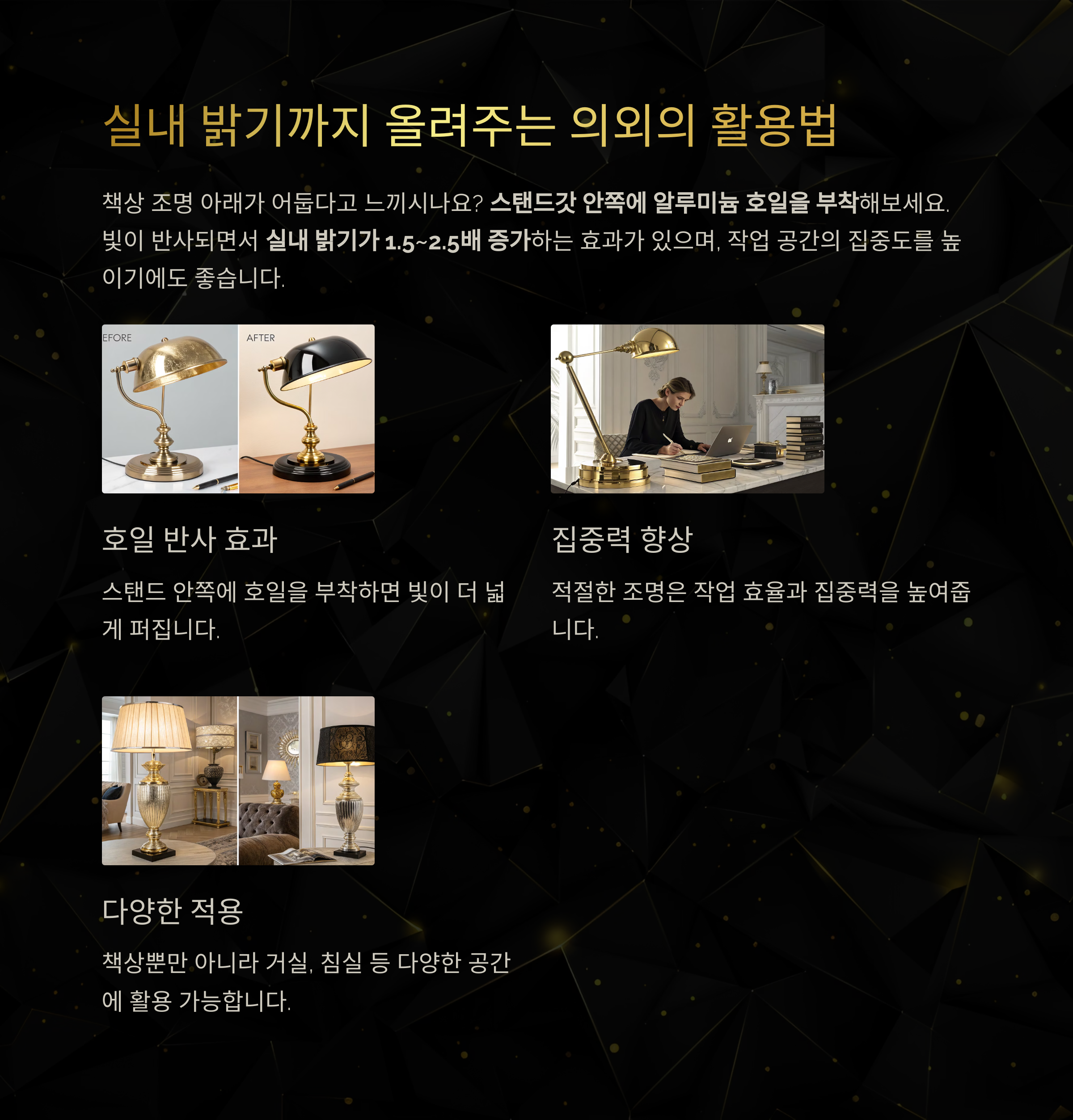 스탠드갓 안쪽에 알루미늄 호일을 부착해보세요.