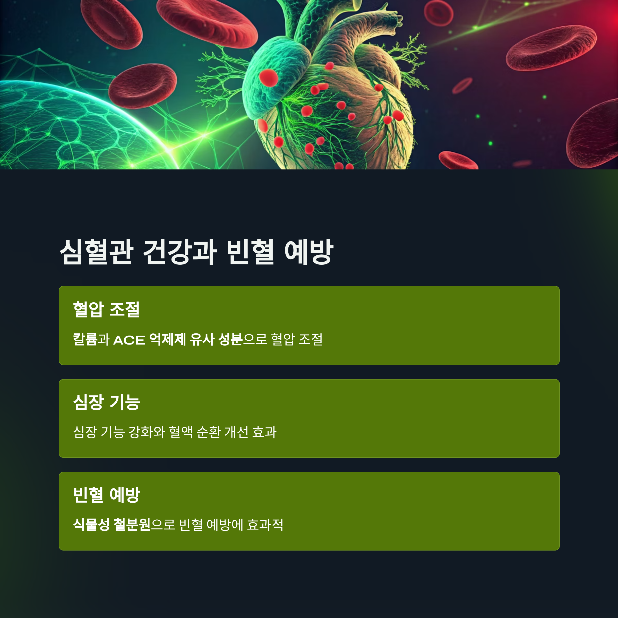 혈압 조절, 심장 기능 강화, 혈액 순환 개선에 기여하며