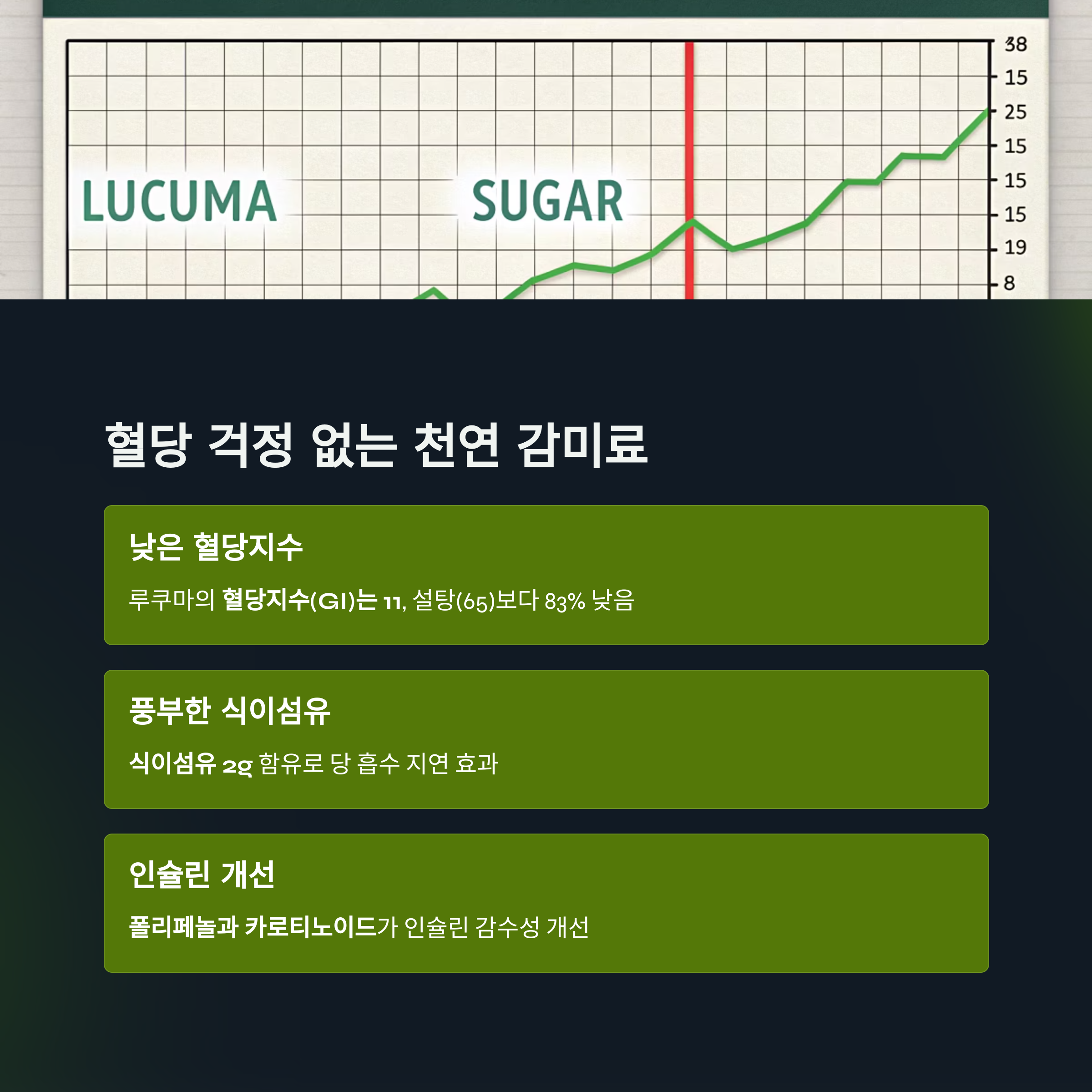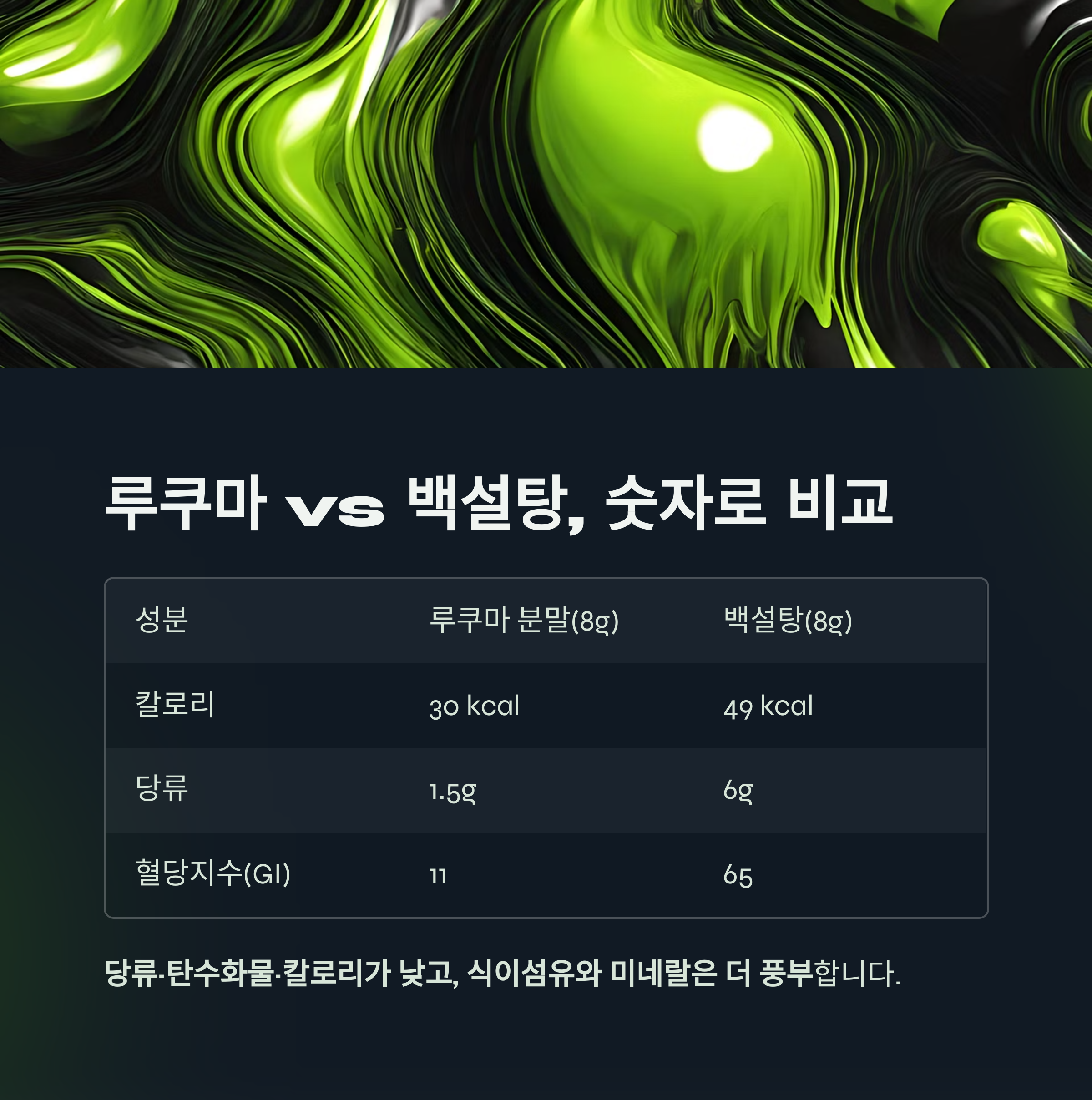 성분 | 루쿠마 분말(8g) | 백설탕 (8g) | 차이점 및 특징 |