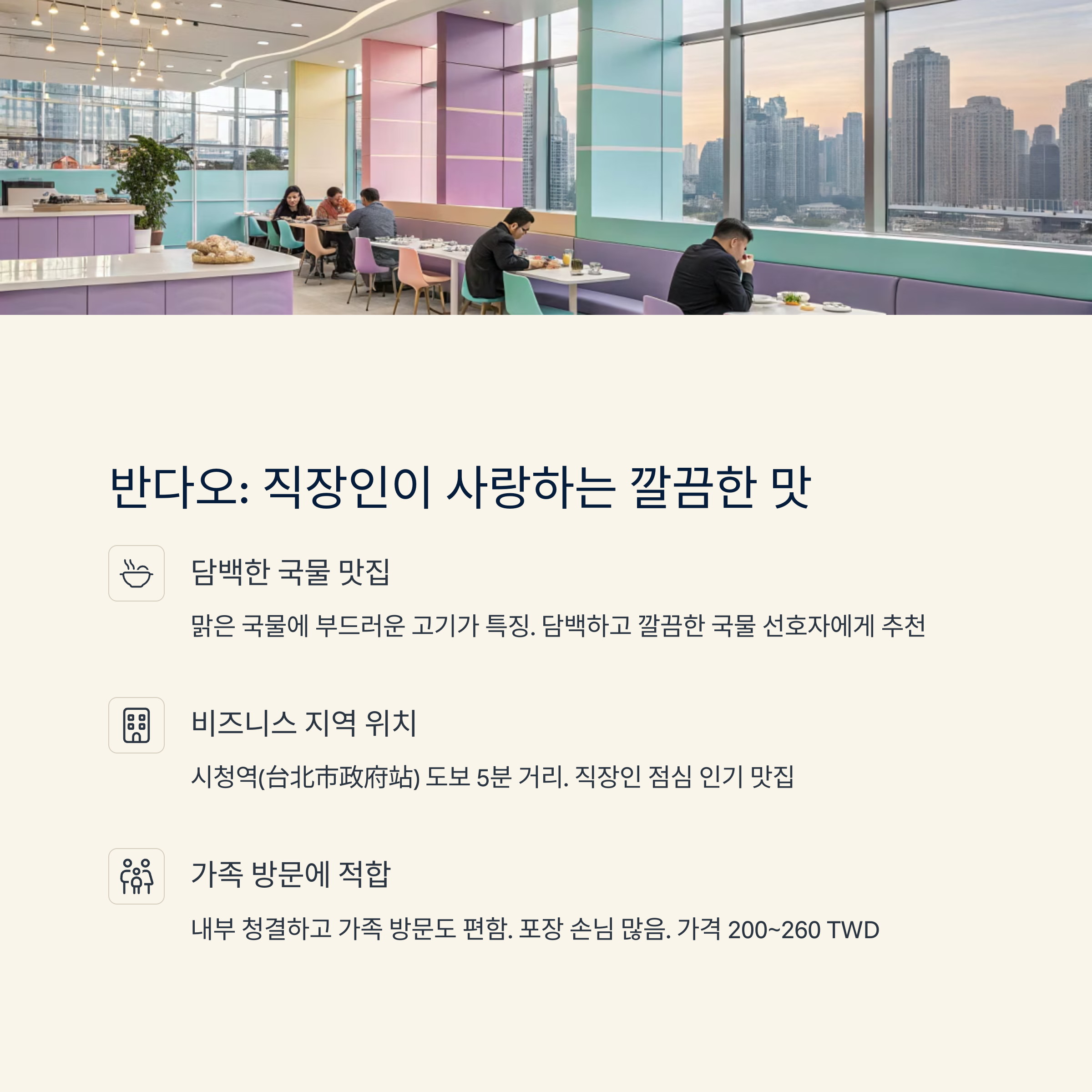 반다오 | 200~260 | 15분 내외 | 깔끔한 국물, 가족 추천 |