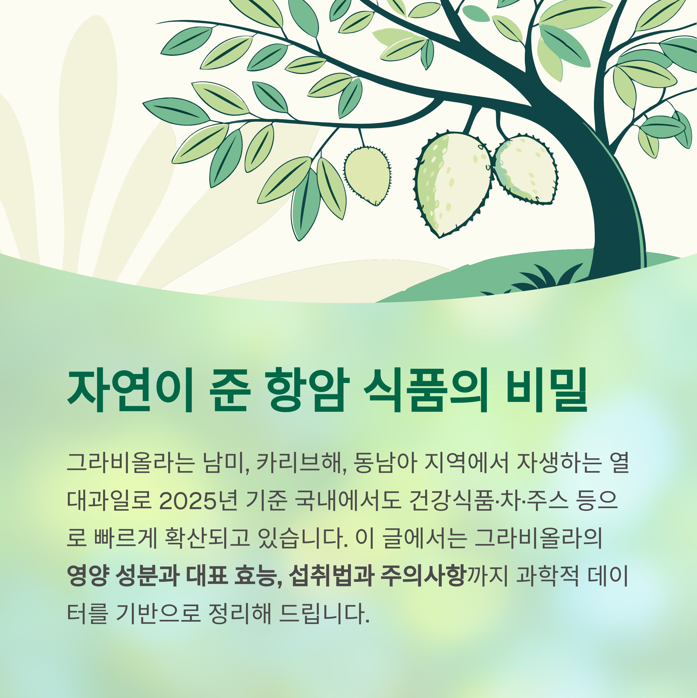 이 글에서는 그라비올라의 영양 성분과 대표 효능, 섭취법과 주의사항까지