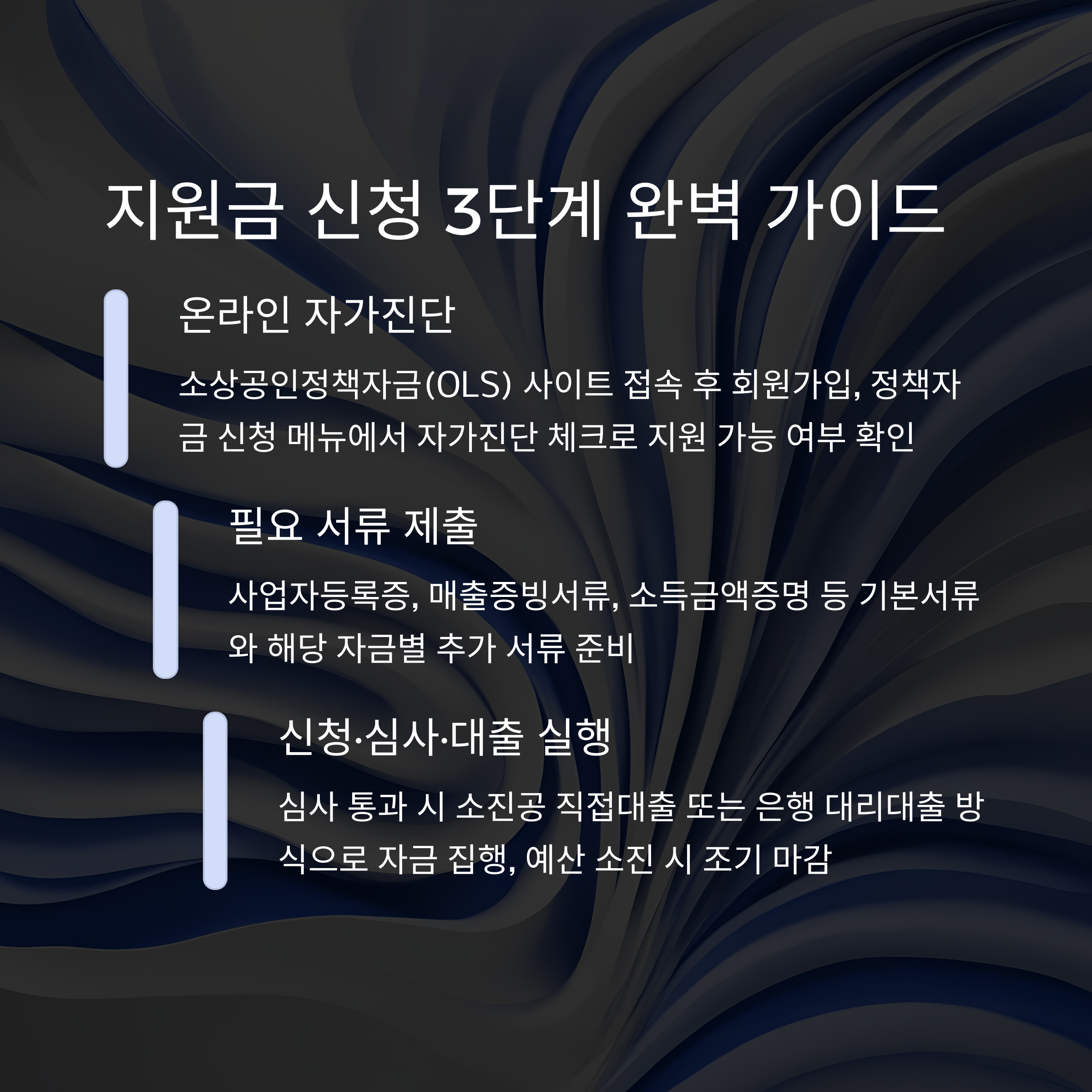 지원금별 조건 확인 → 온라인 신청 → 서류 준비 → 빠른 실행, 이 네 단계를 기억하세요.