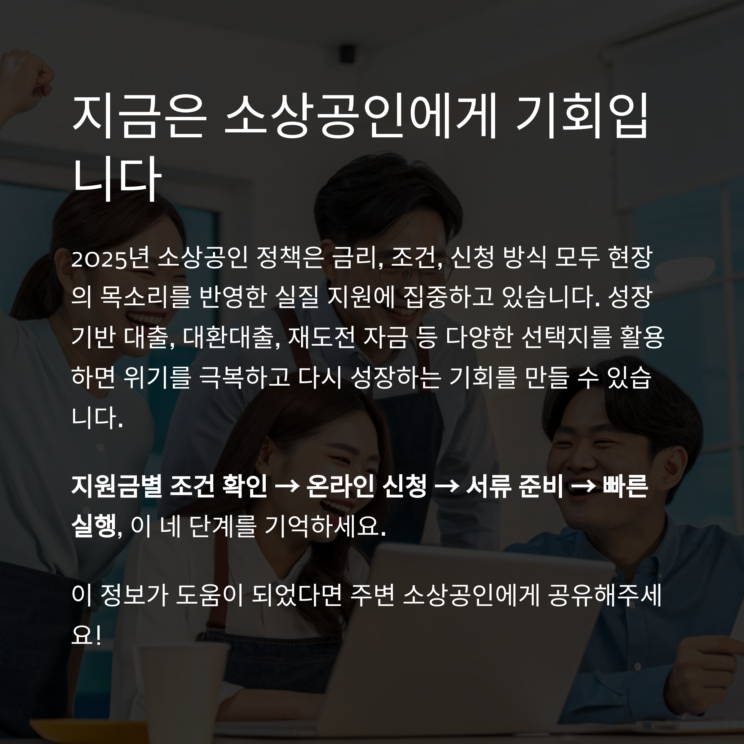 2025년 소상공인 정책은 금리, 조건, 신청 방식 모두 현장의 목소리를 반영한 실질 지원에 집중하고 있습니다.
