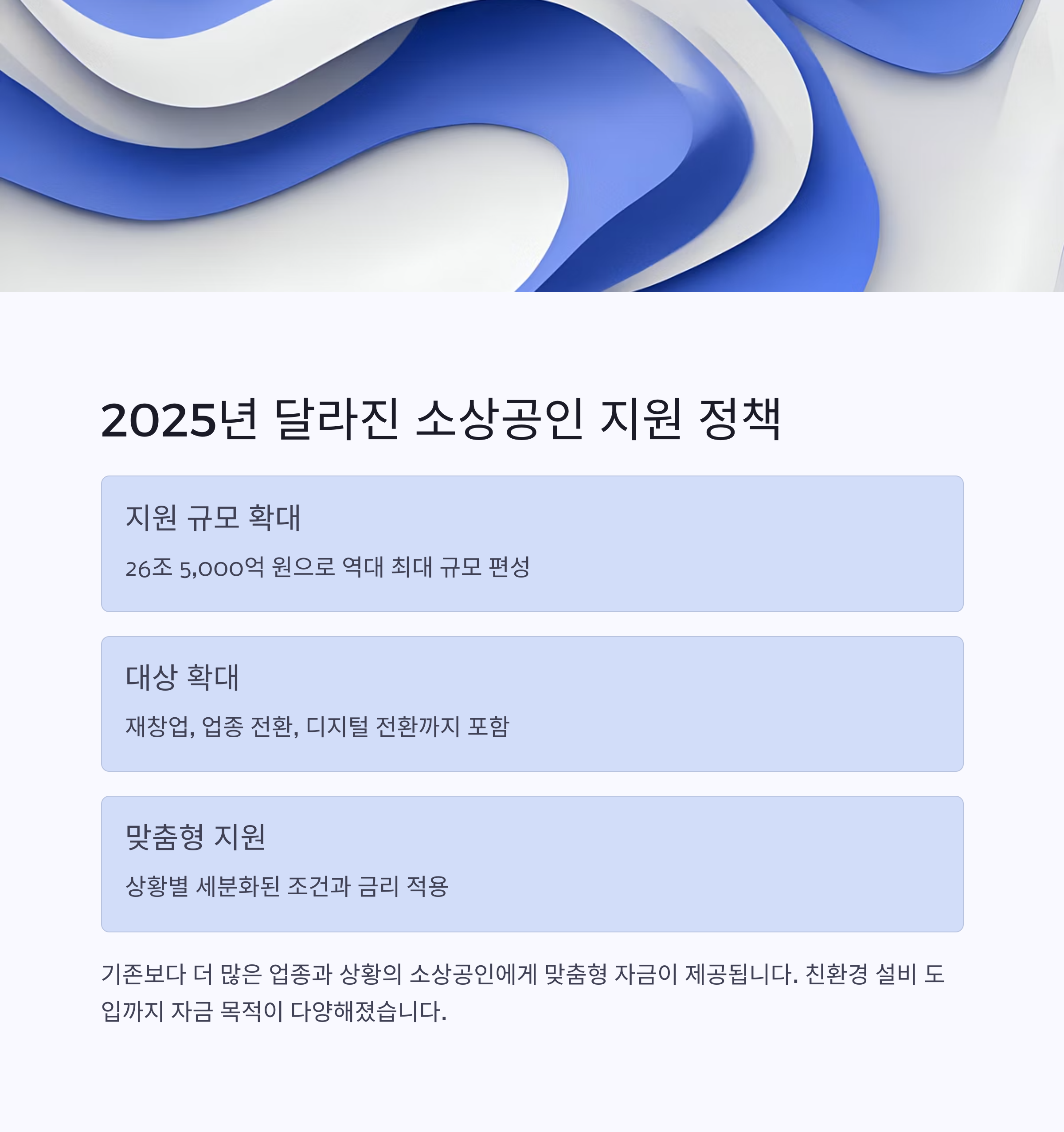 2025년, 정부는 소상공인을 위한 정책자금 지원을 역대 최대 규모인 26조 5,000억 원으로 확대했습니다.