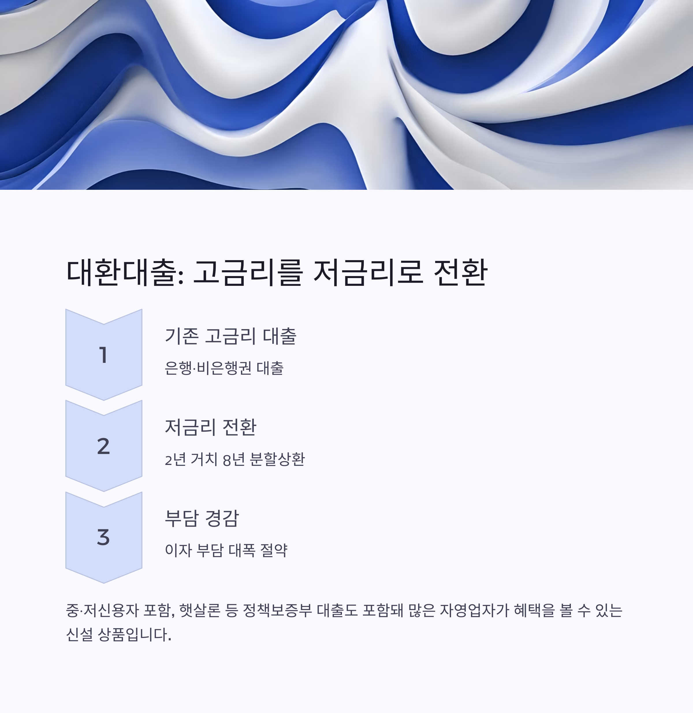 대환대출 | 한도 없음 | 2년 거치 8년 분할상환 신설 | 고금리 대출 보유 소상공인 |