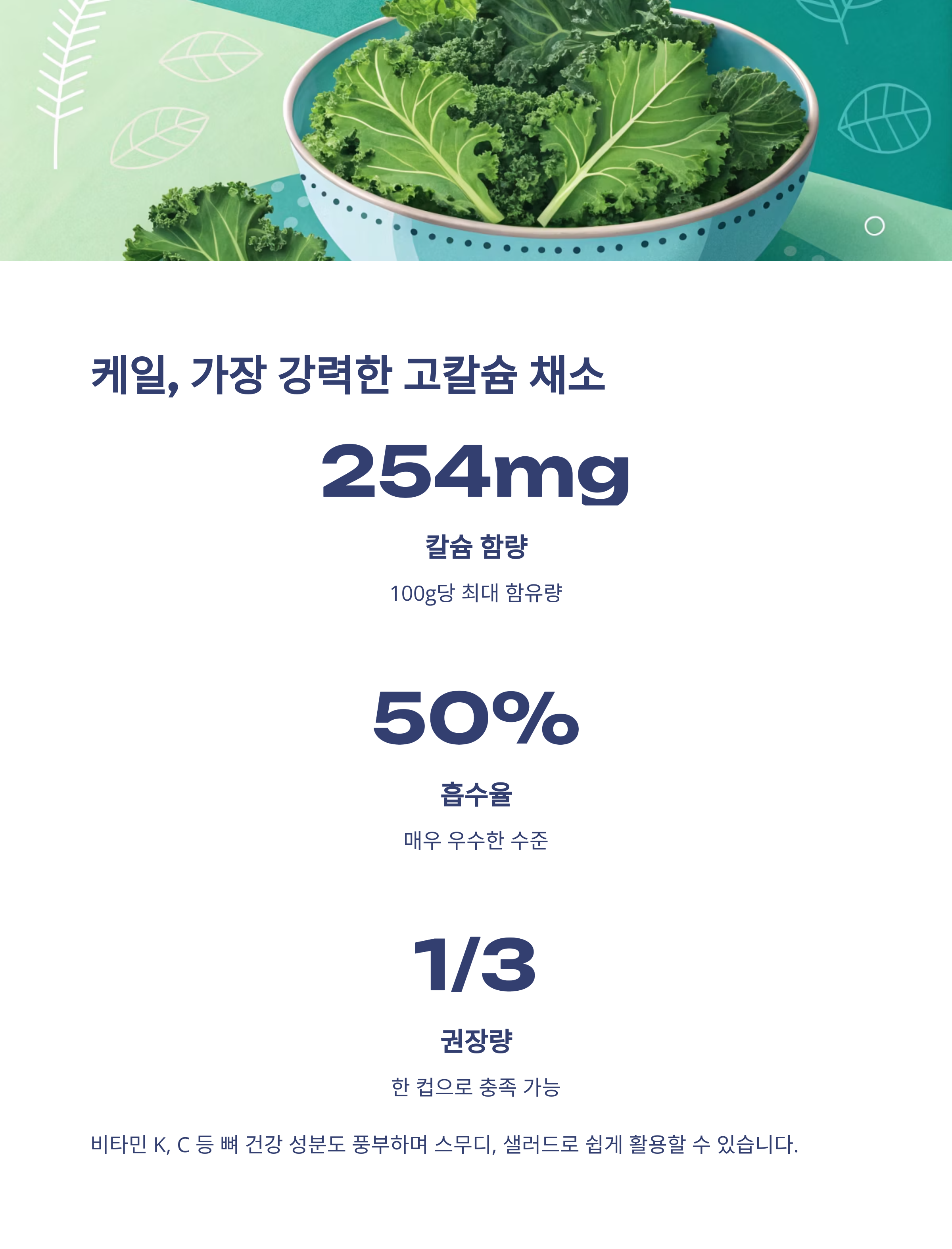 비타민 K, C 등 뼈 건강에 중요한 성분도 풍부합니다.
