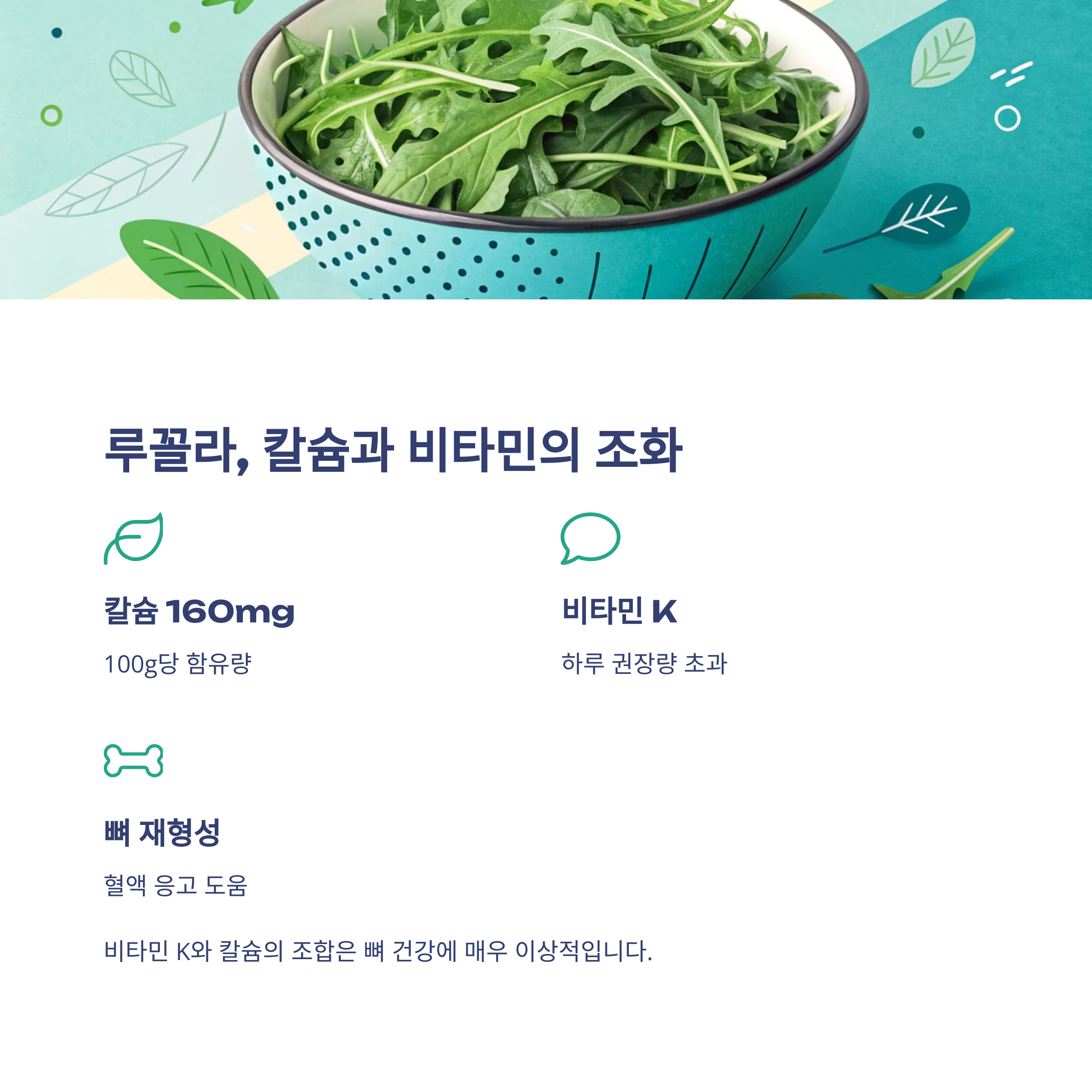 루꼴라(아루굴라), 칼슘과 비타민의 조화
