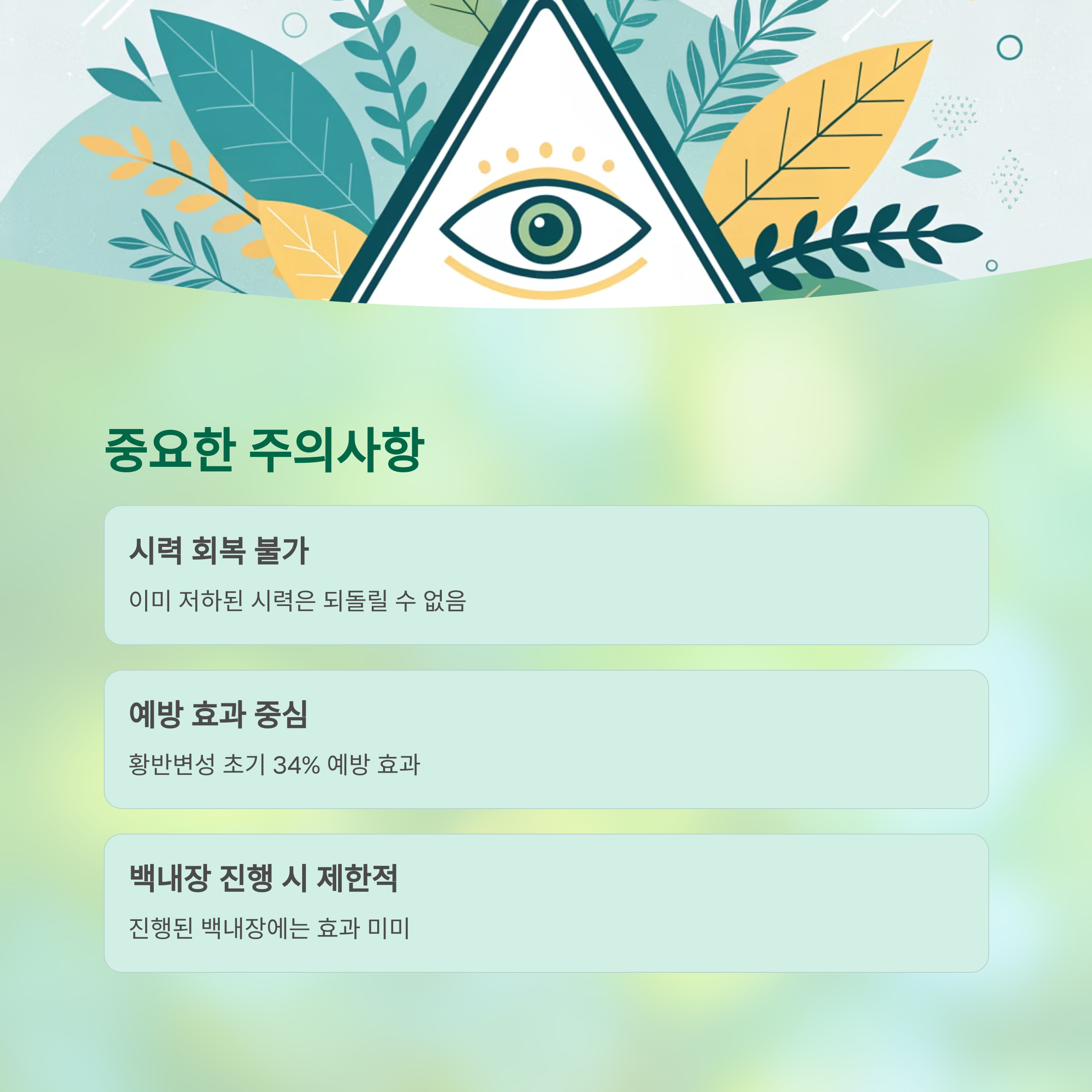 - 백내장 진행 단계에서는 효과가 미미하다는 점도