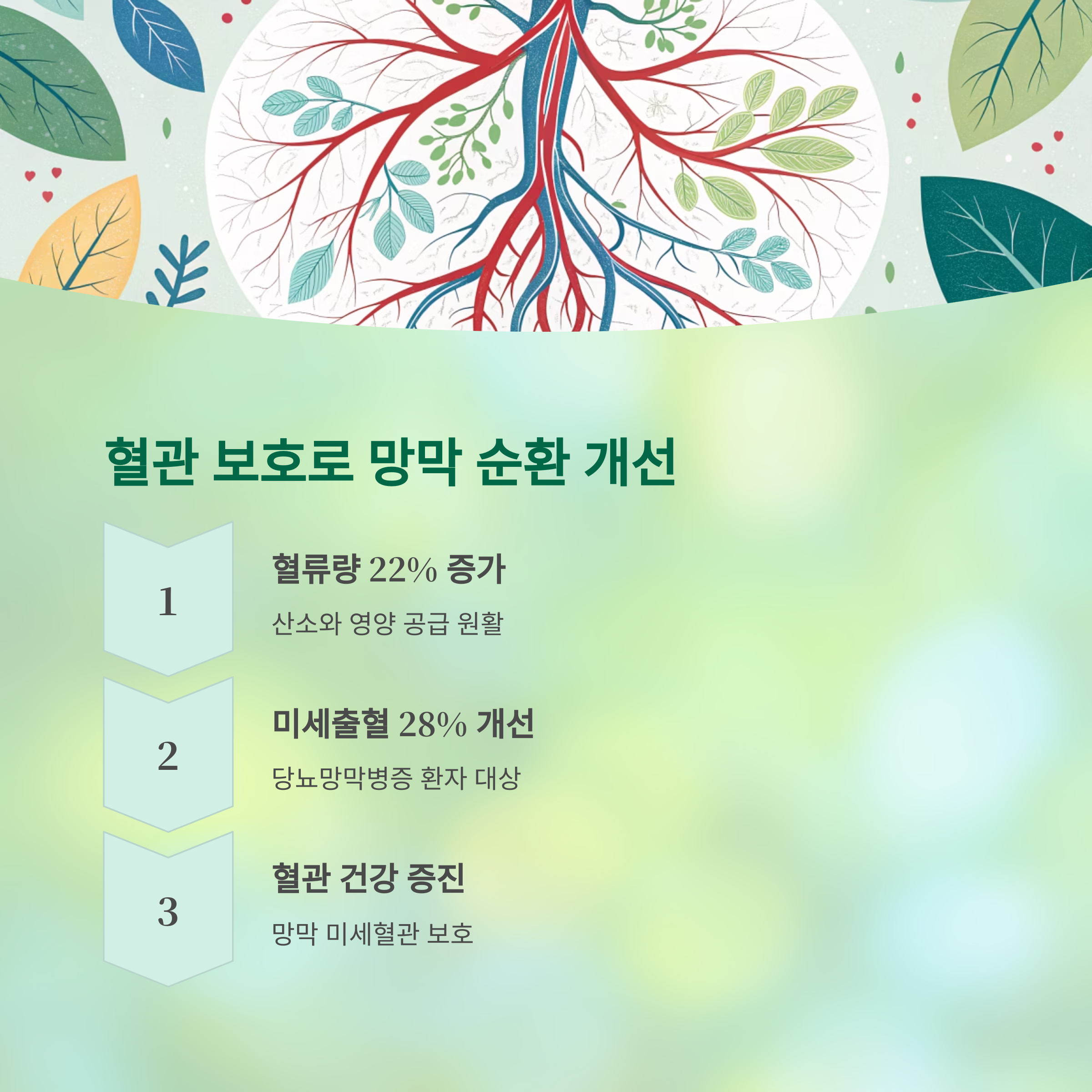 혈류량을 22% 증가시켜 눈으로 가는 산소와 영양 공급을 원활하게 돕습니다.