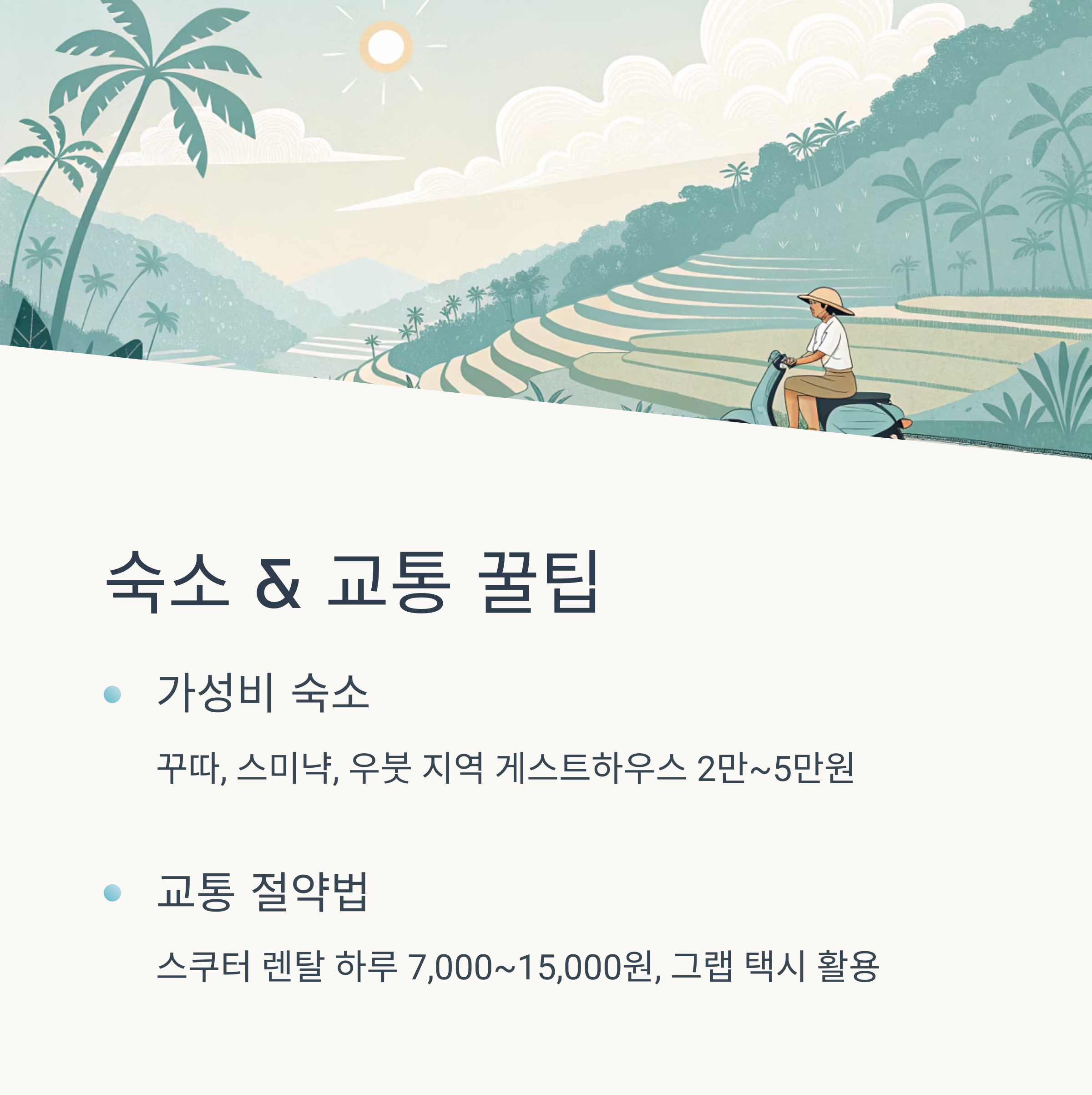 발리 숙소 추천 | 교통 수단 팁 | 식비 절약법 |
