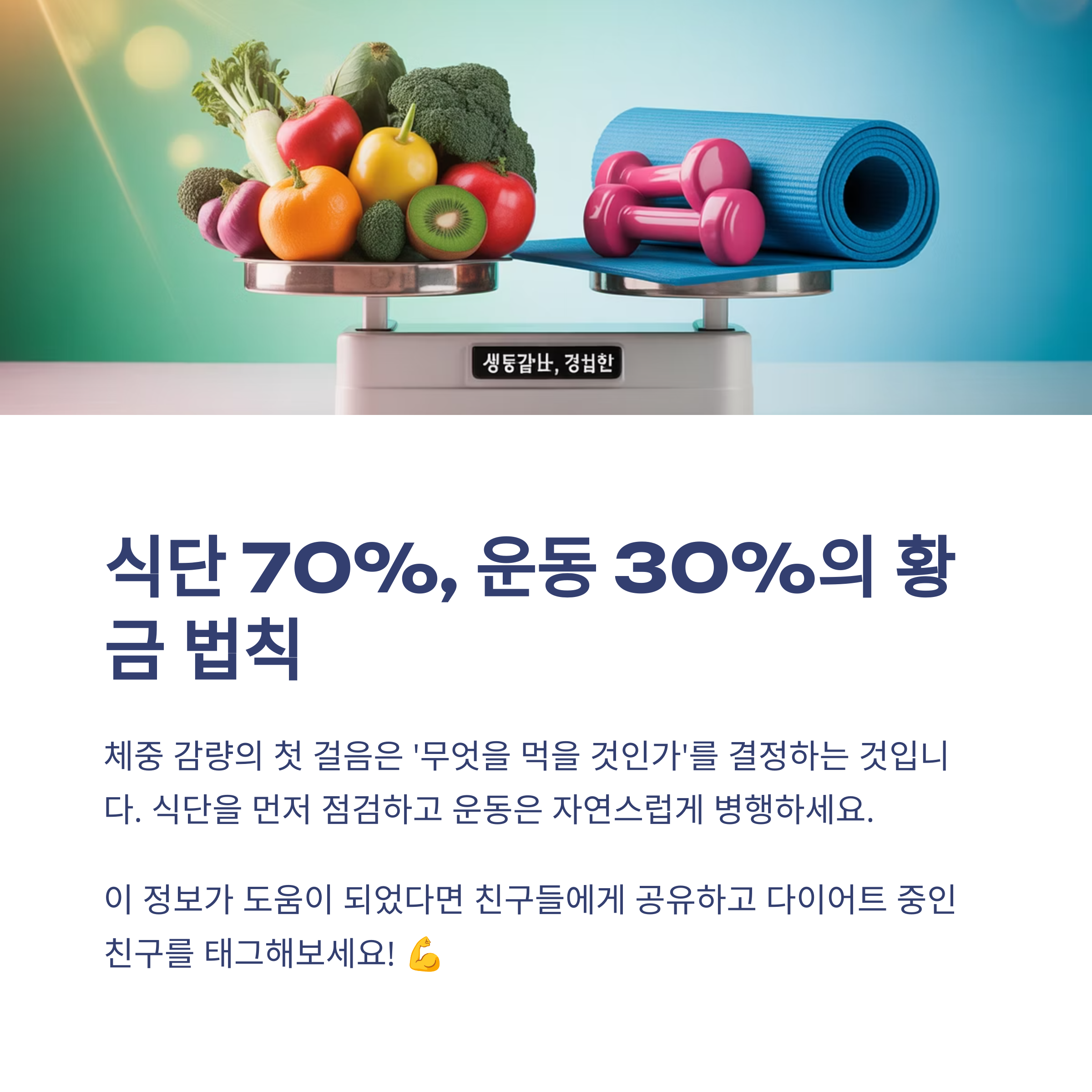 운동은 그 다음입니다. 식단 70%, 운동 30%의 황금 비율을 기억하세요.